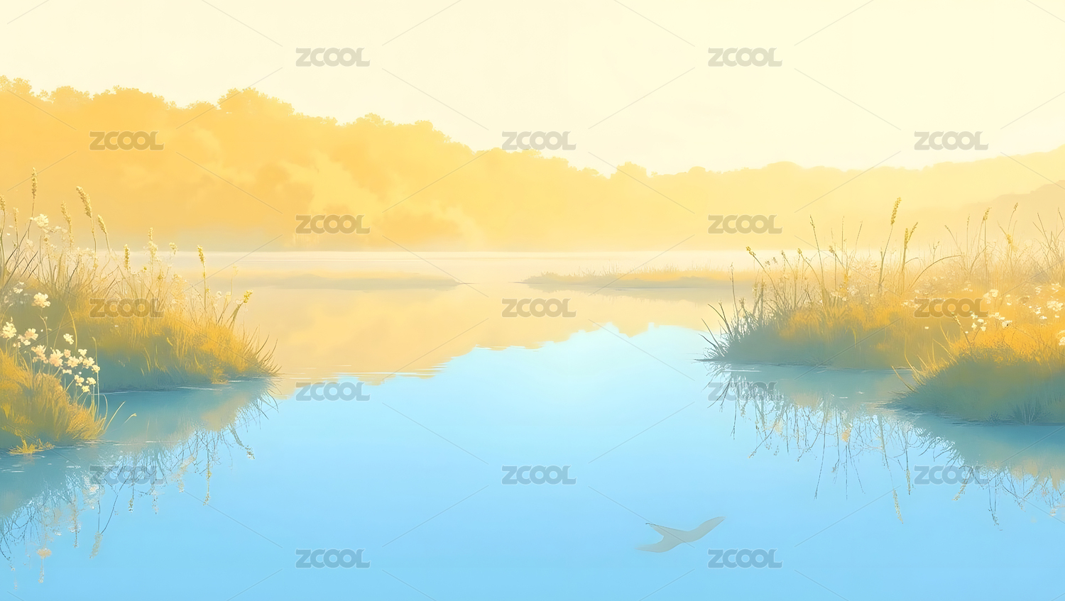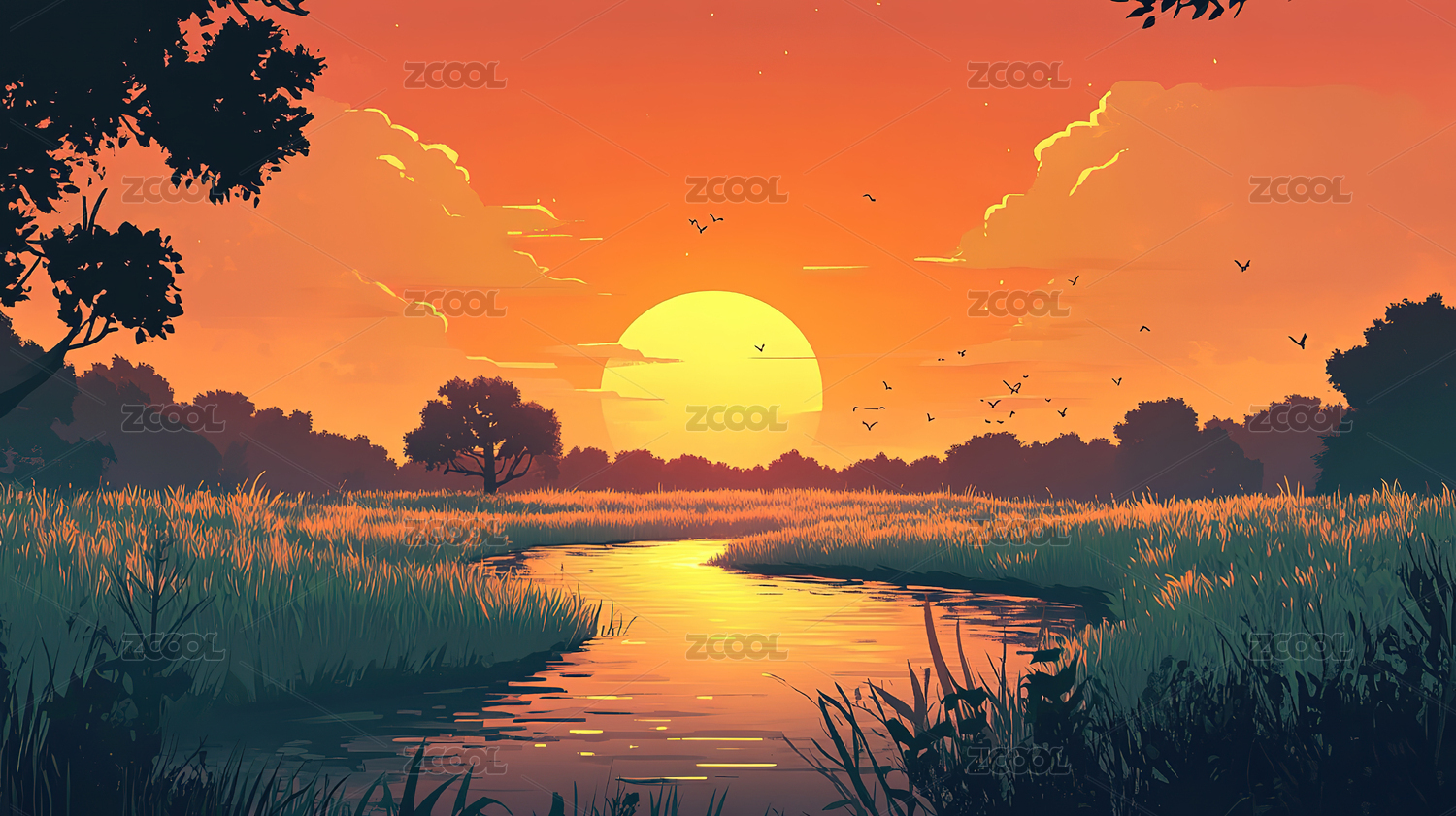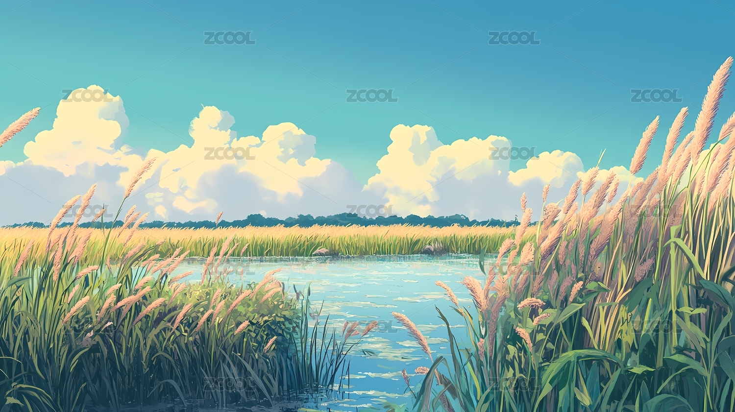 复古日漫风景芦苇湿地湖边户外旅游夏季旅行