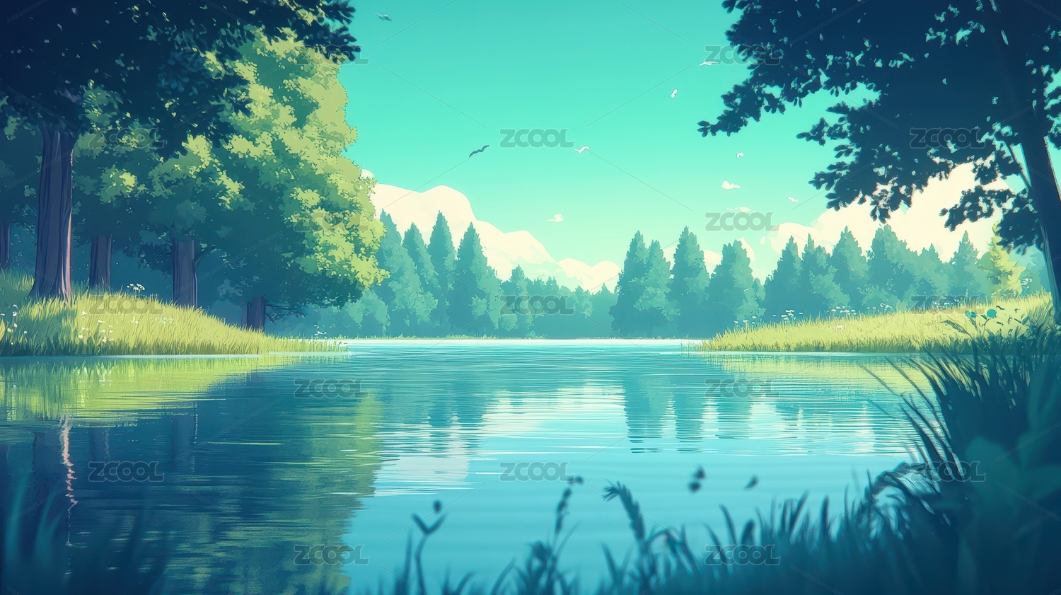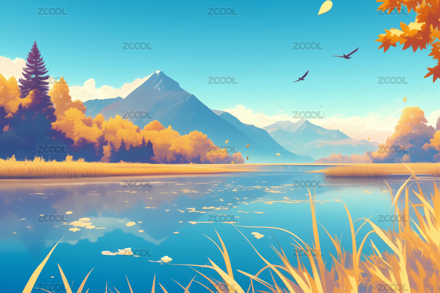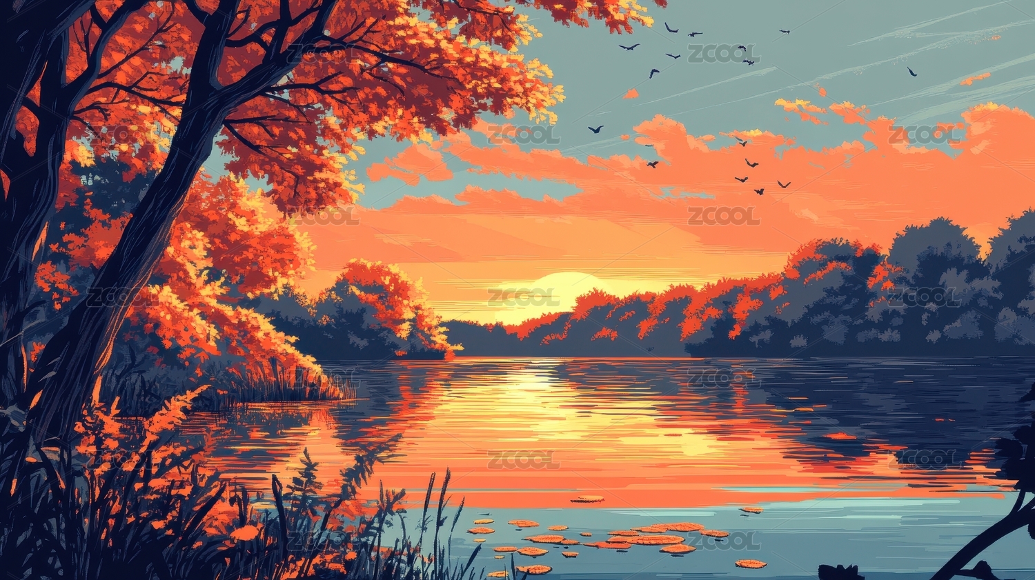 复古日漫风景芦苇湿地湖边户外旅游夏季旅行