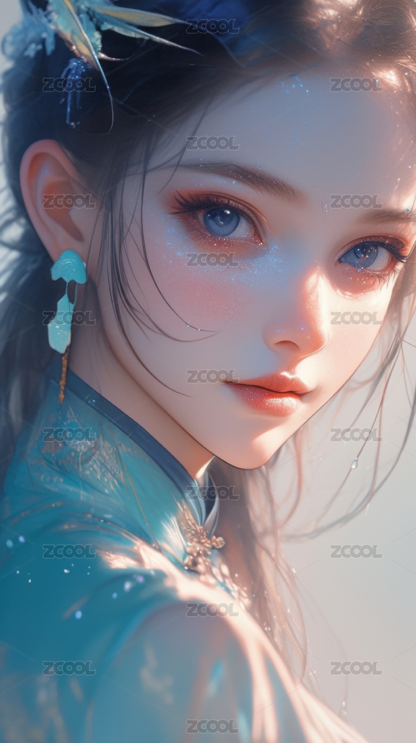 女孩,人像,竖屏,上半身,美貌,美女,汉服,白色,长发,新中式