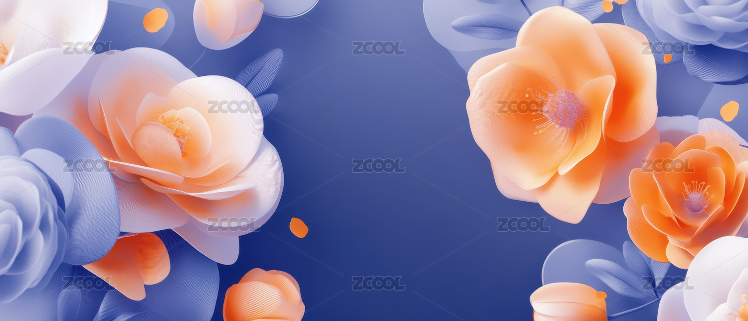 橙蓝花卉背景