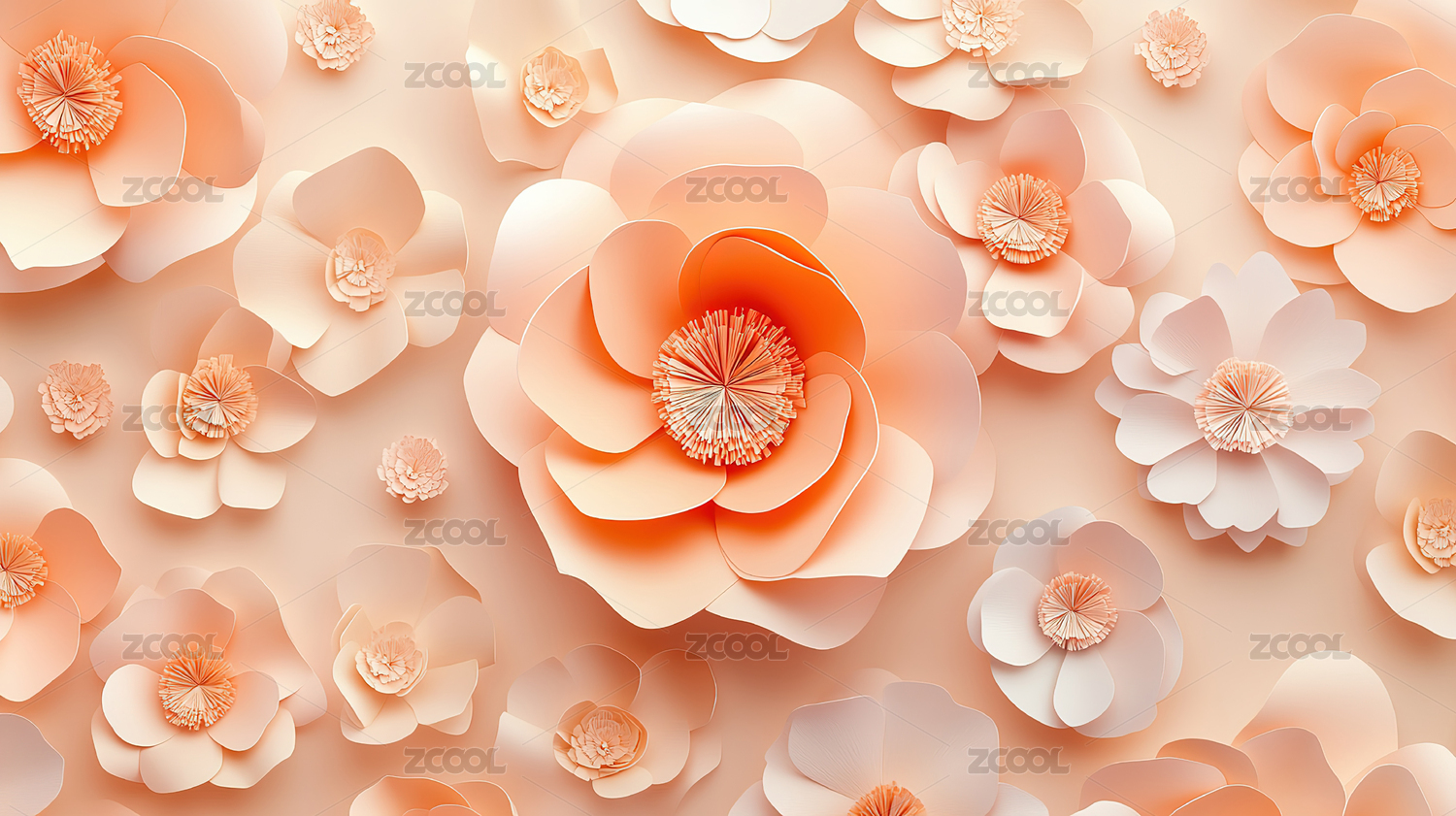 粉橙牡丹花纹