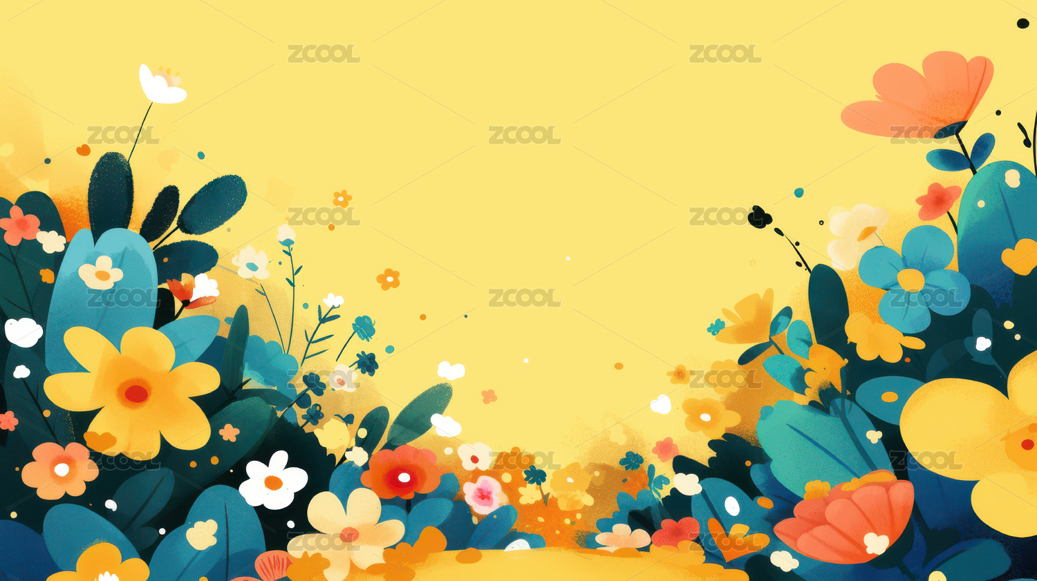 春天手绘植物花朵插画背景