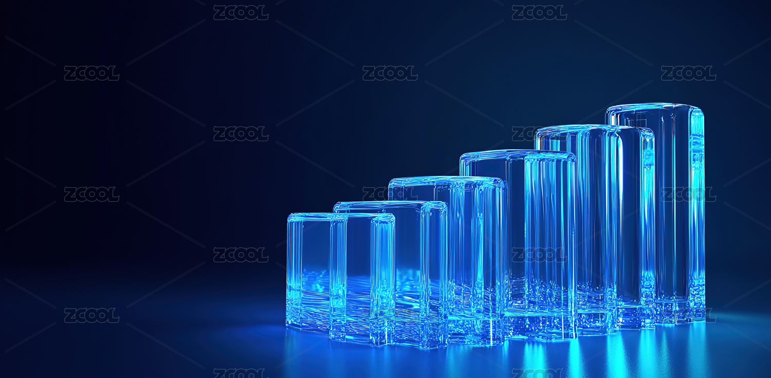 透明立方体组合的蓝色背景