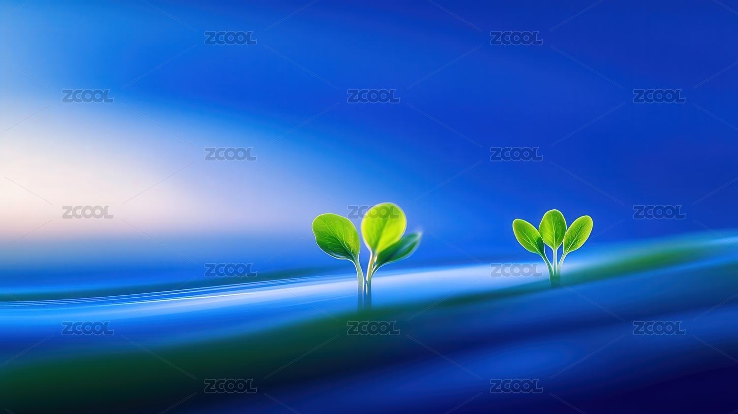 小苗与渐变绿色线条