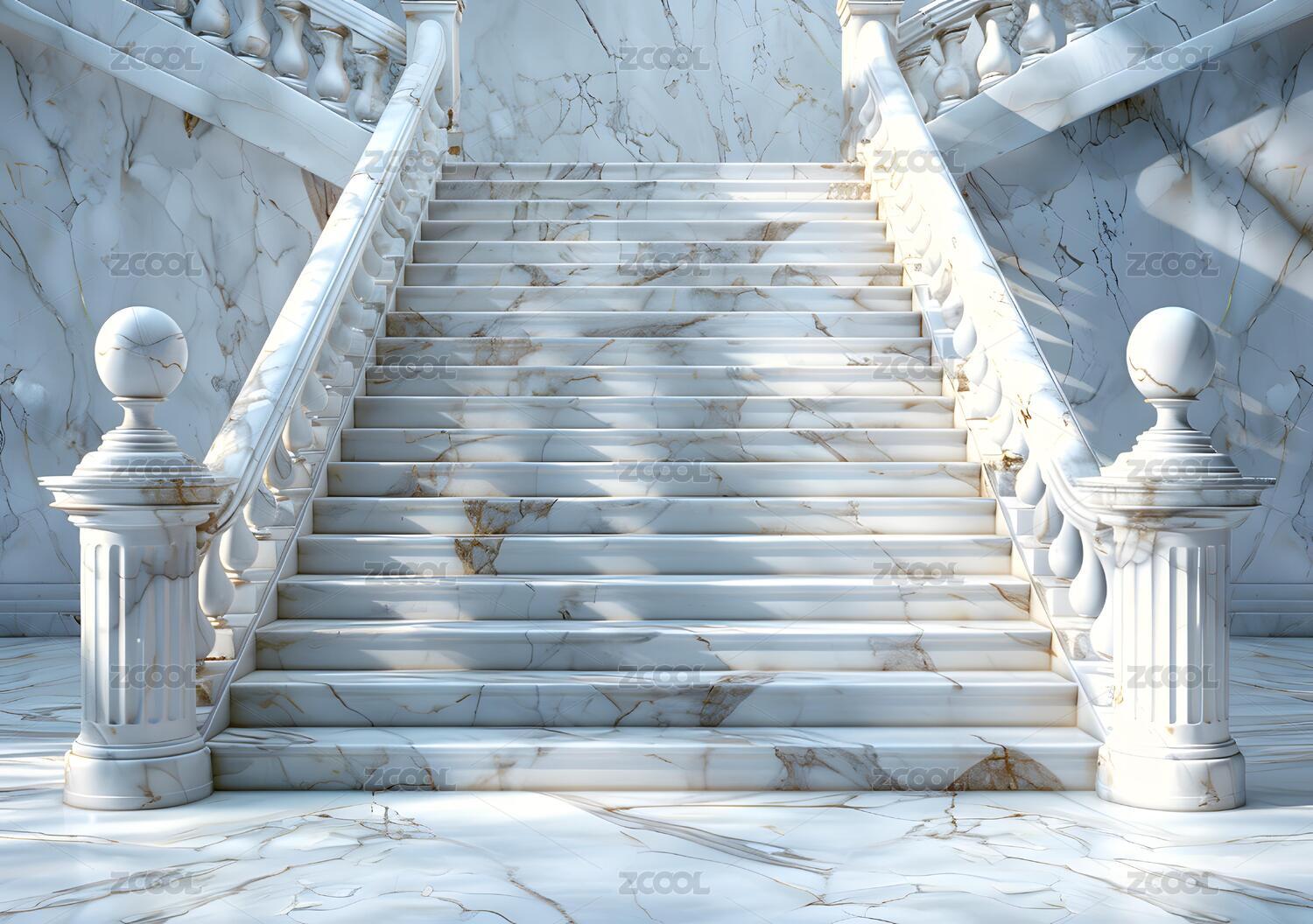 简单欧式建筑房间红地毯的楼梯台阶3D插画