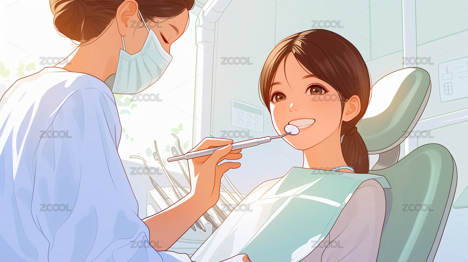 牙医诊所的体检水彩画