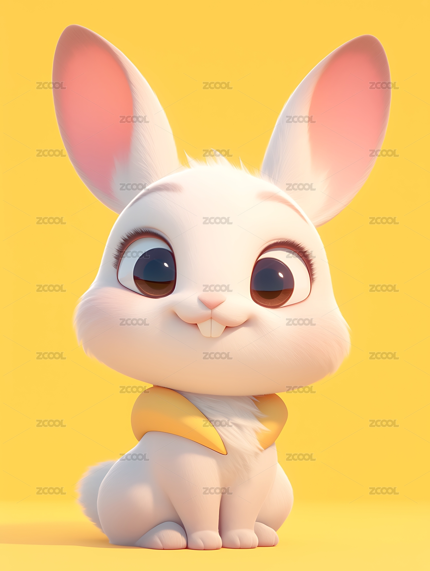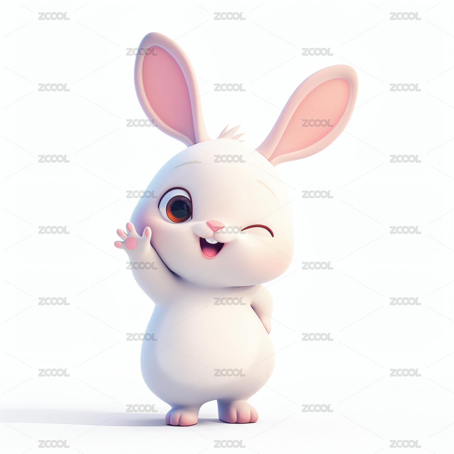 3D,兔子,可爱,卡通,打招呼,招手,白兔,动物,插画,动画