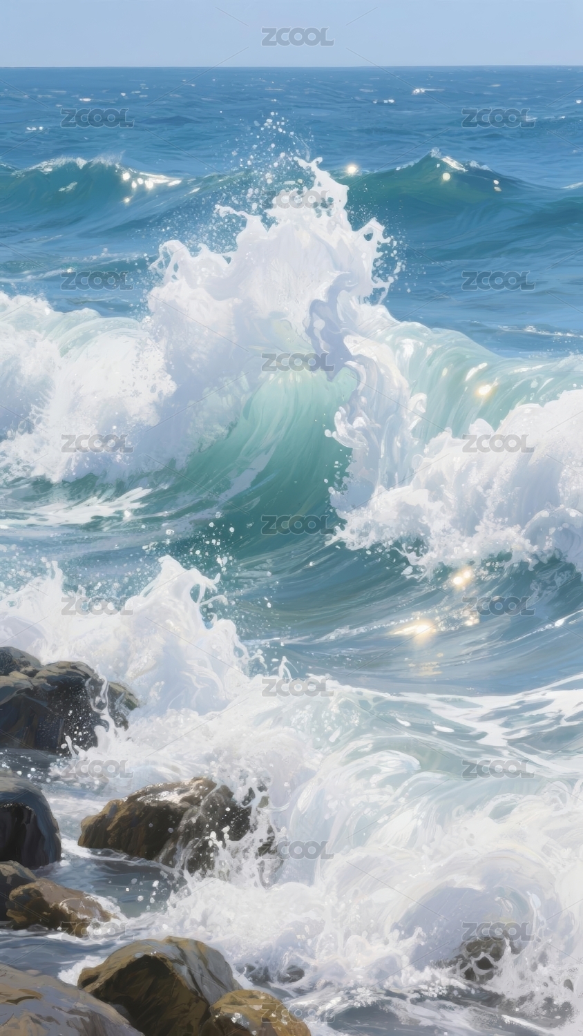 海浪,波涛,海洋,海景,壮观,蓝色,宁静,清新,治愈,户外