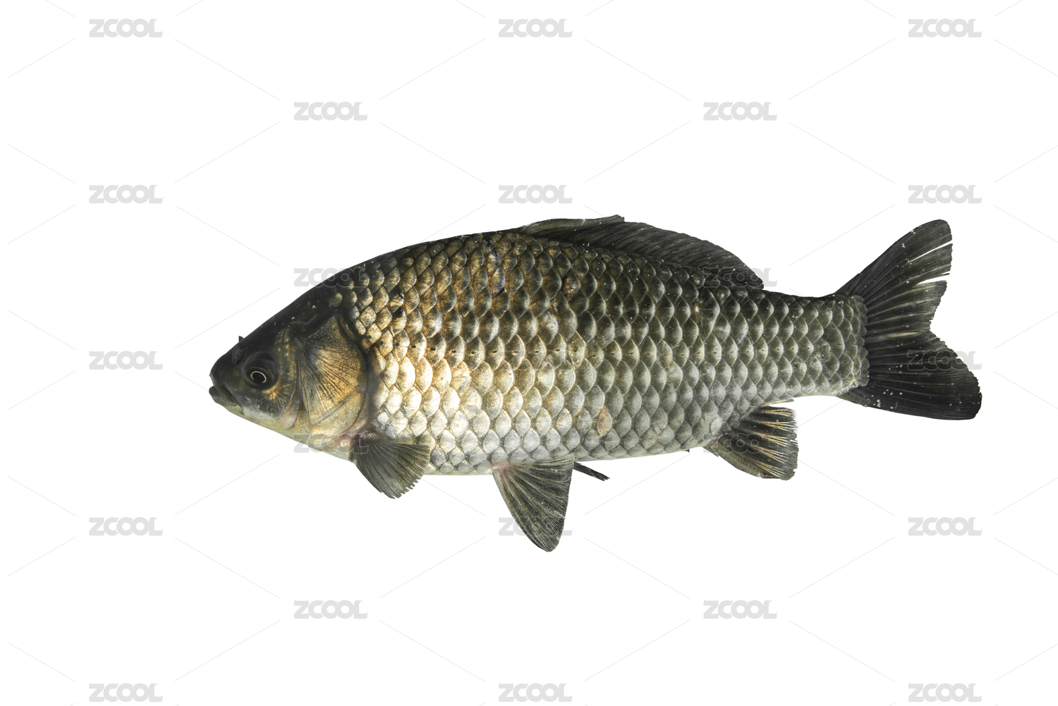 白底上的一条鲫鱼