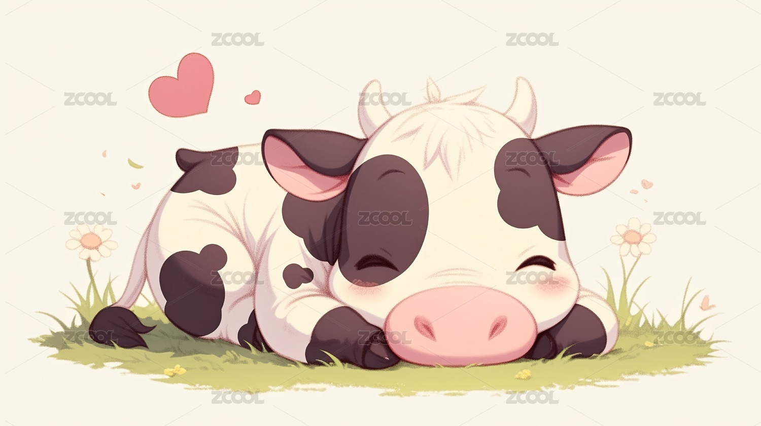 坐着的可爱小奶牛