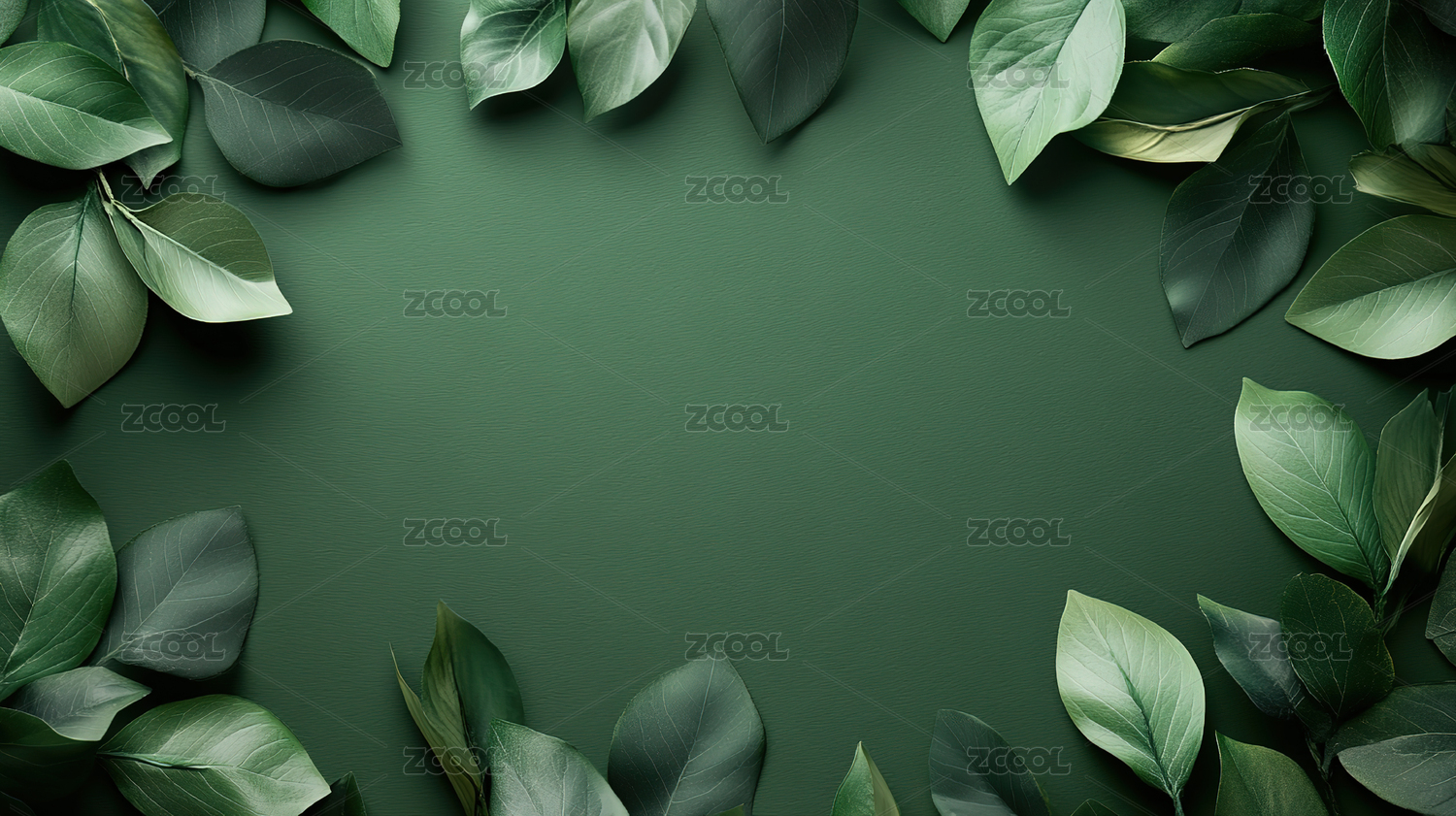 绿叶环绕的绿色背景
