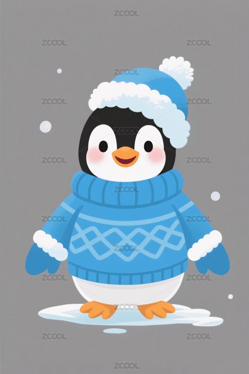 3D,插画,呆萌,动物,卡通,可爱,毛绒,美丽,南极,企鹅