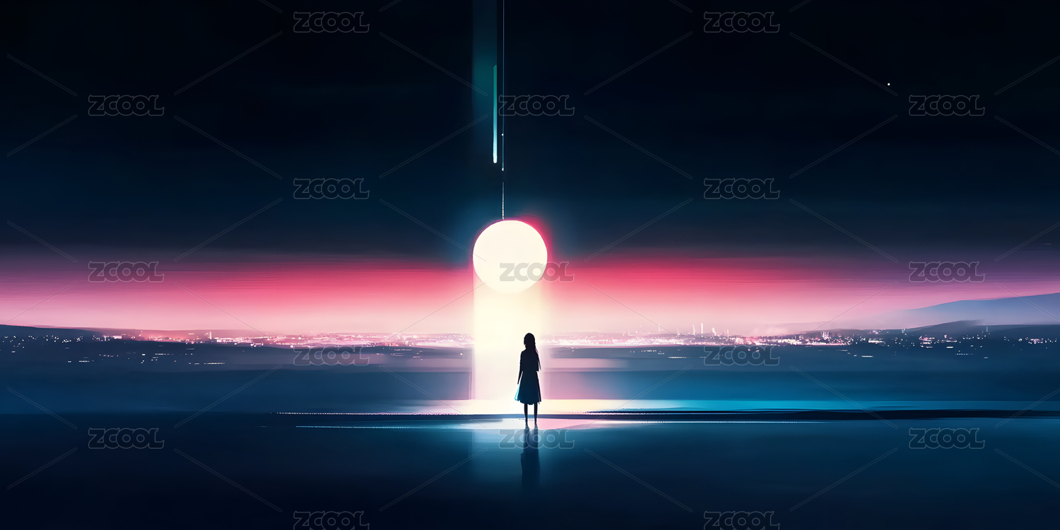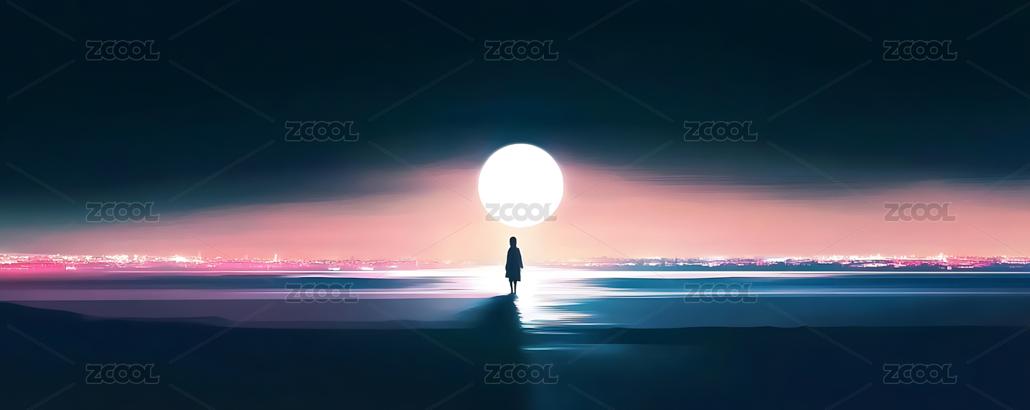 唯美,动漫,风景,海边,背景,海报,插画,壁纸,图案,包装