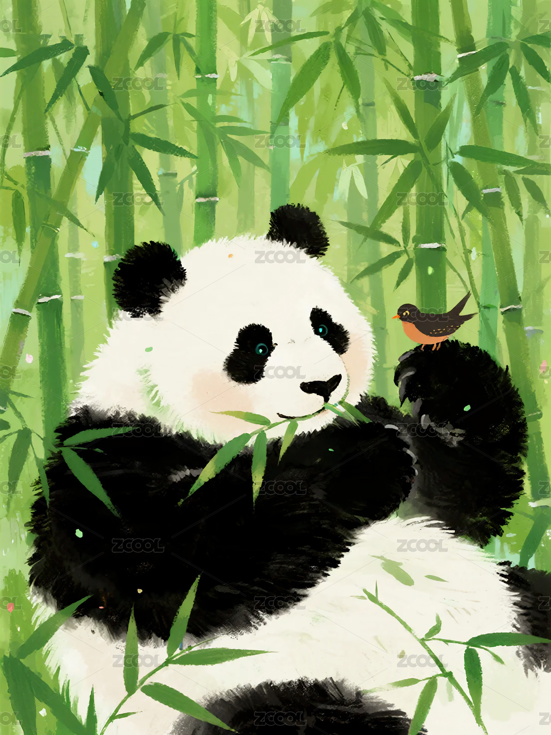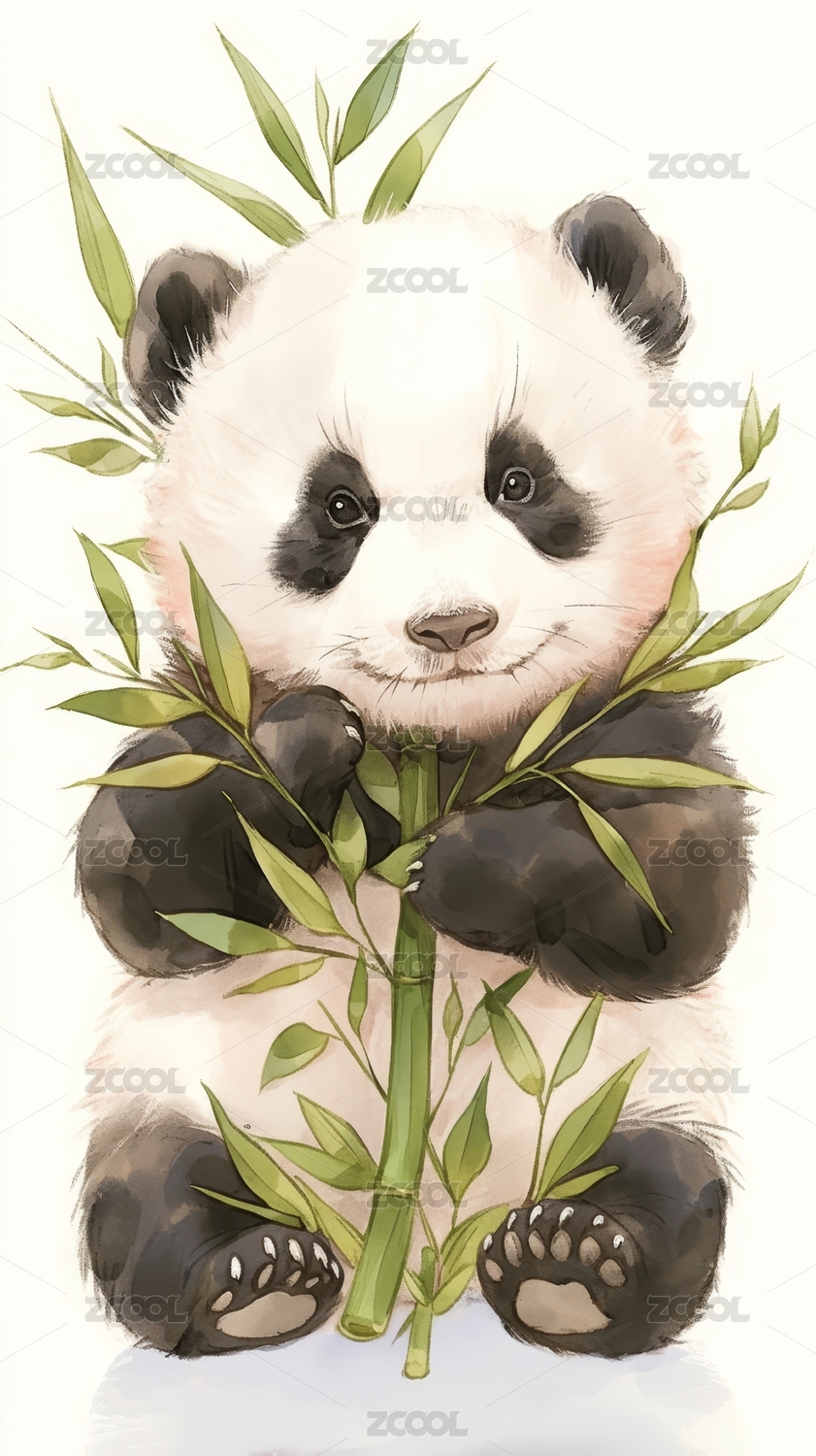 竹子,图案,自然,清新,水彩,熊猫,可爱,卡通,动物,色彩