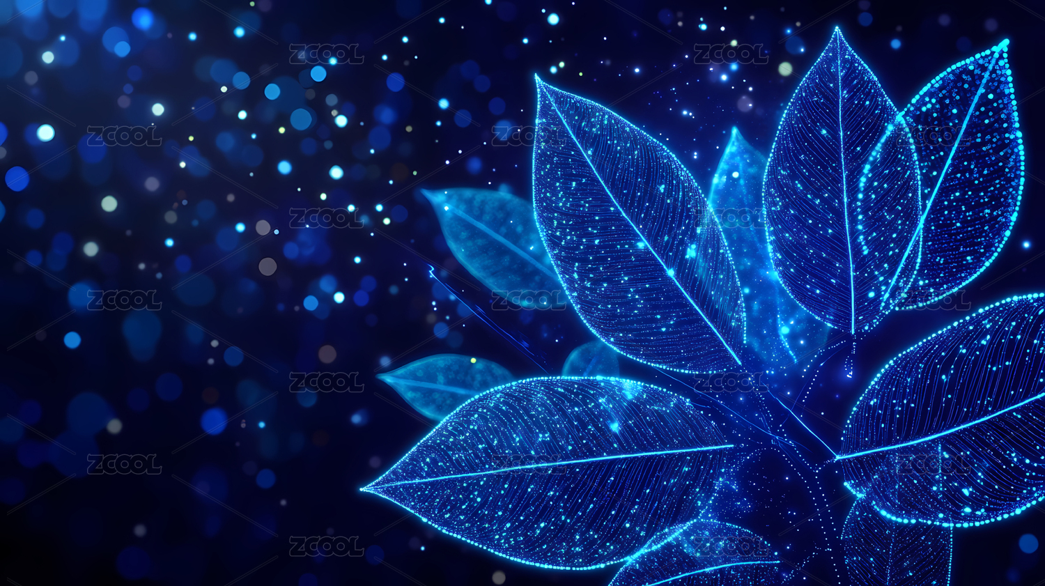 蓝光,粒子,虚拟,植物,树叶,枝茎,光影,光线,光束,星点
