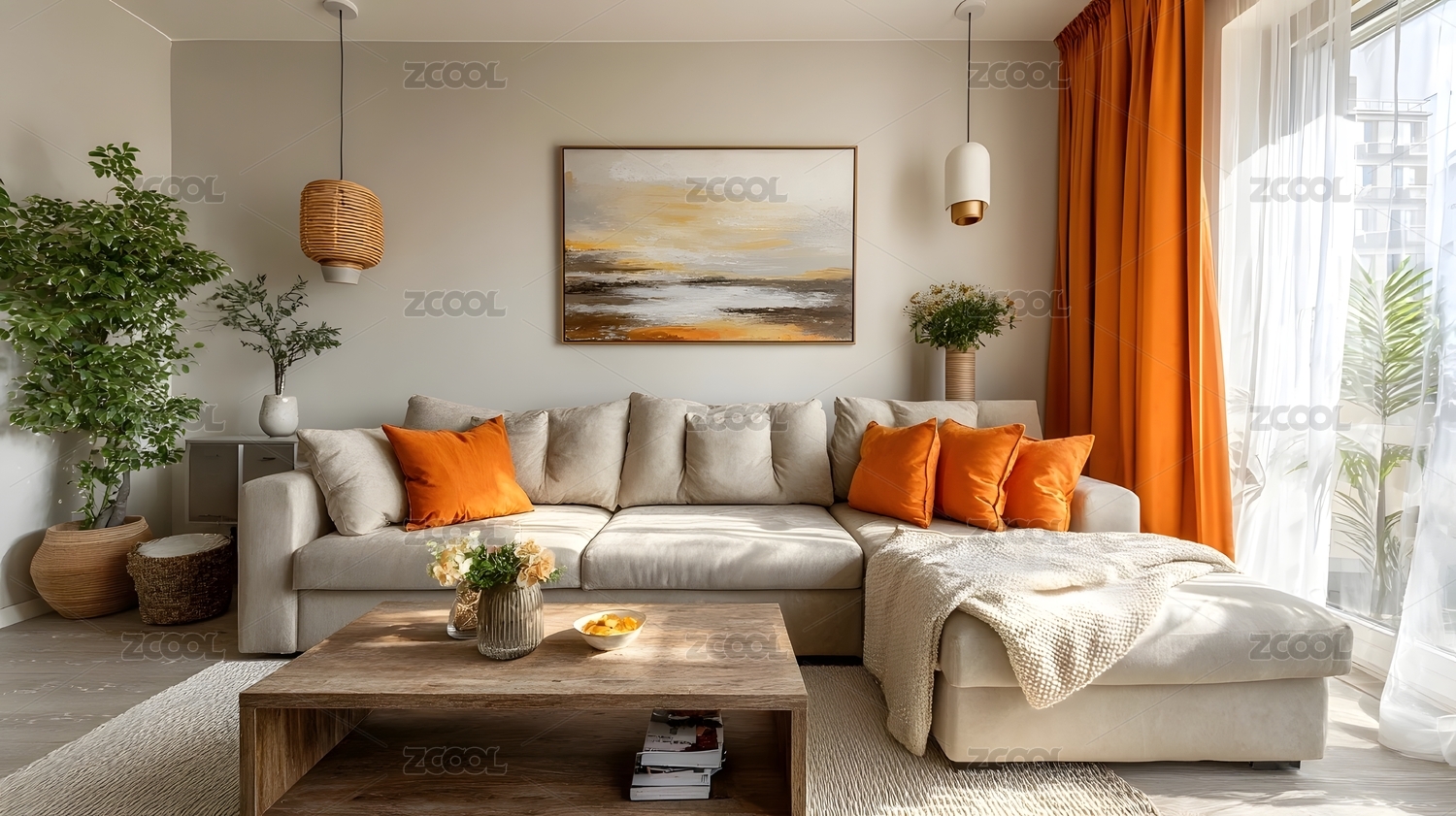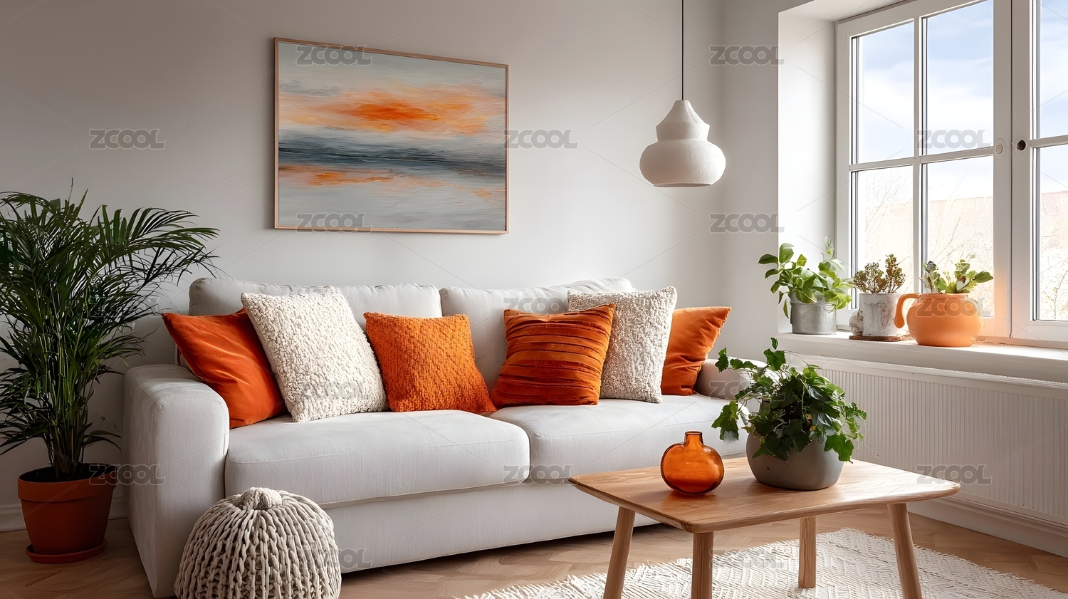 温馨客厅橙色点缀