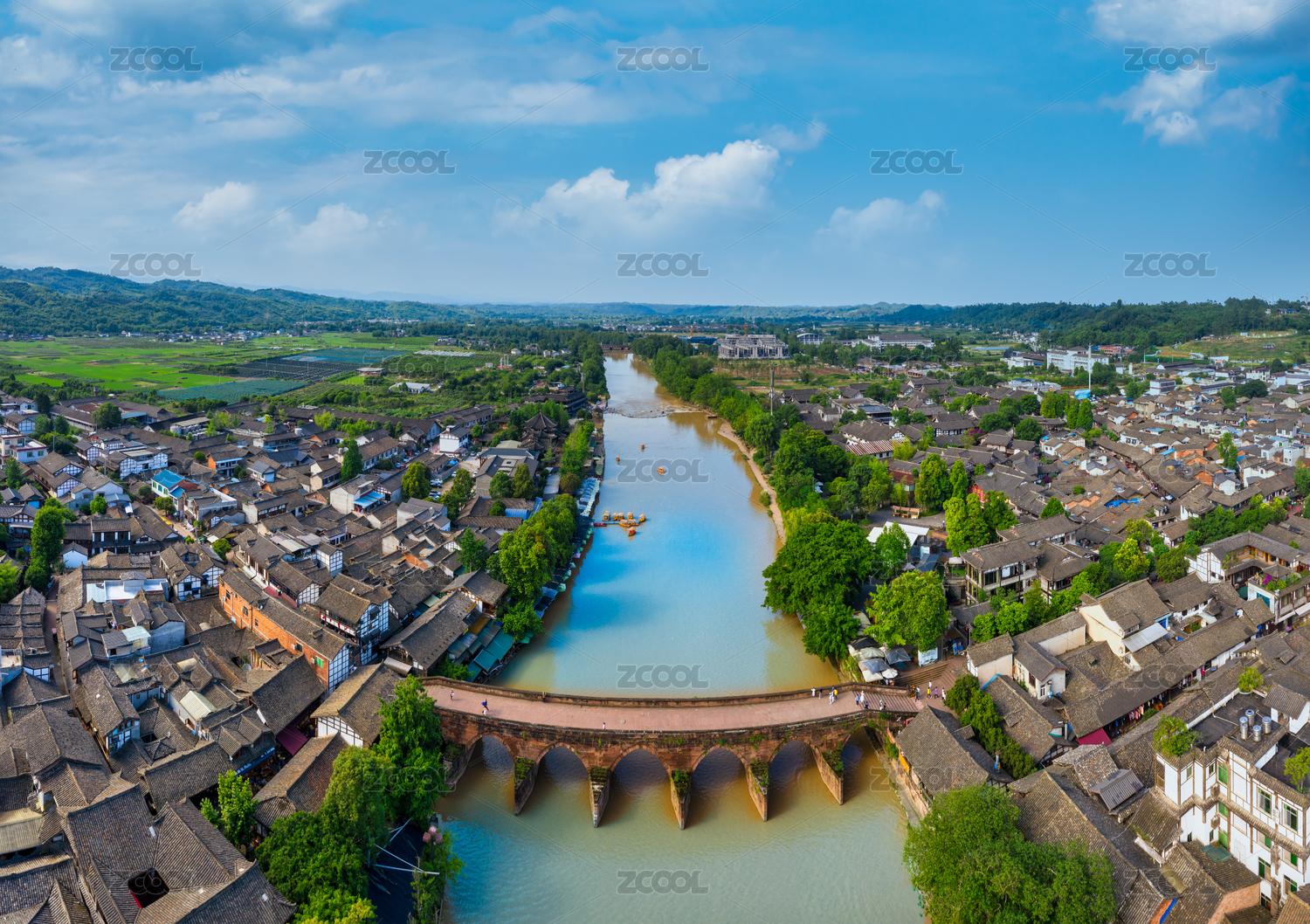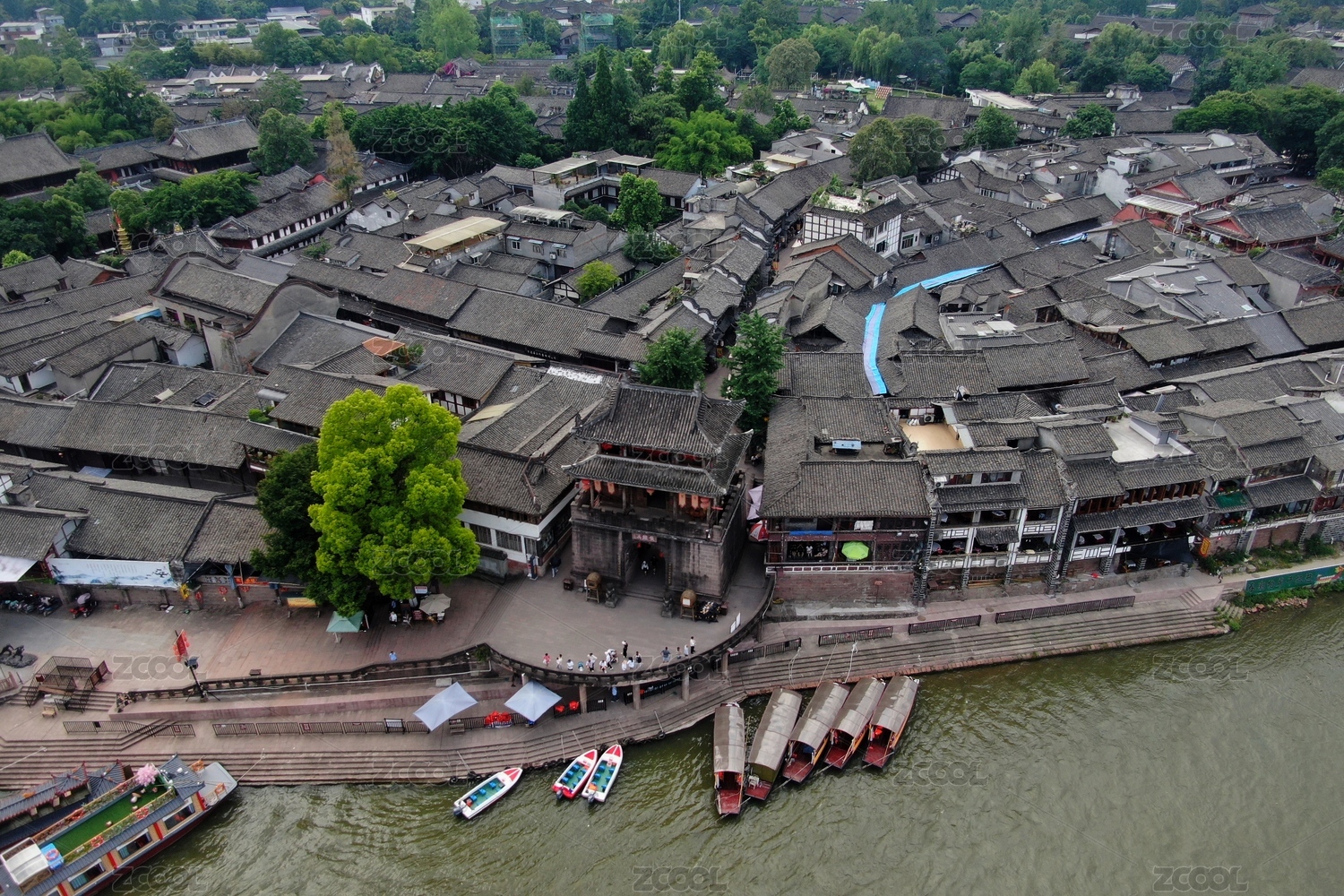 成都,黄龙溪,古镇,航拍,河流,白昼,风景,历史,户外,游船