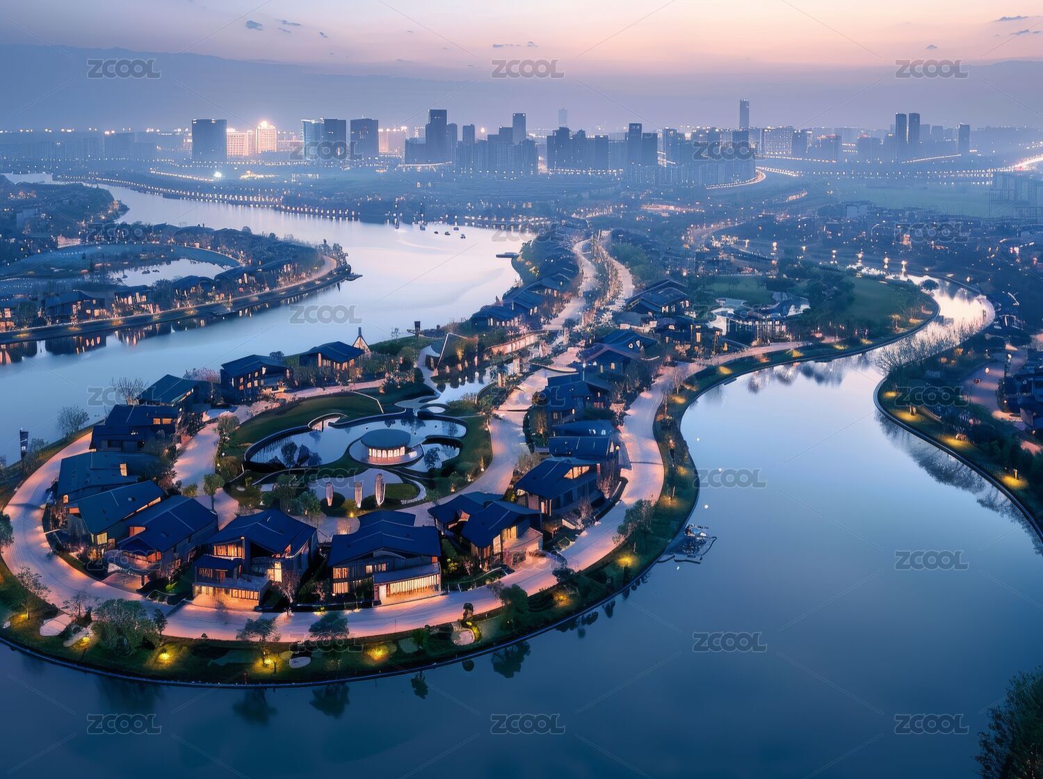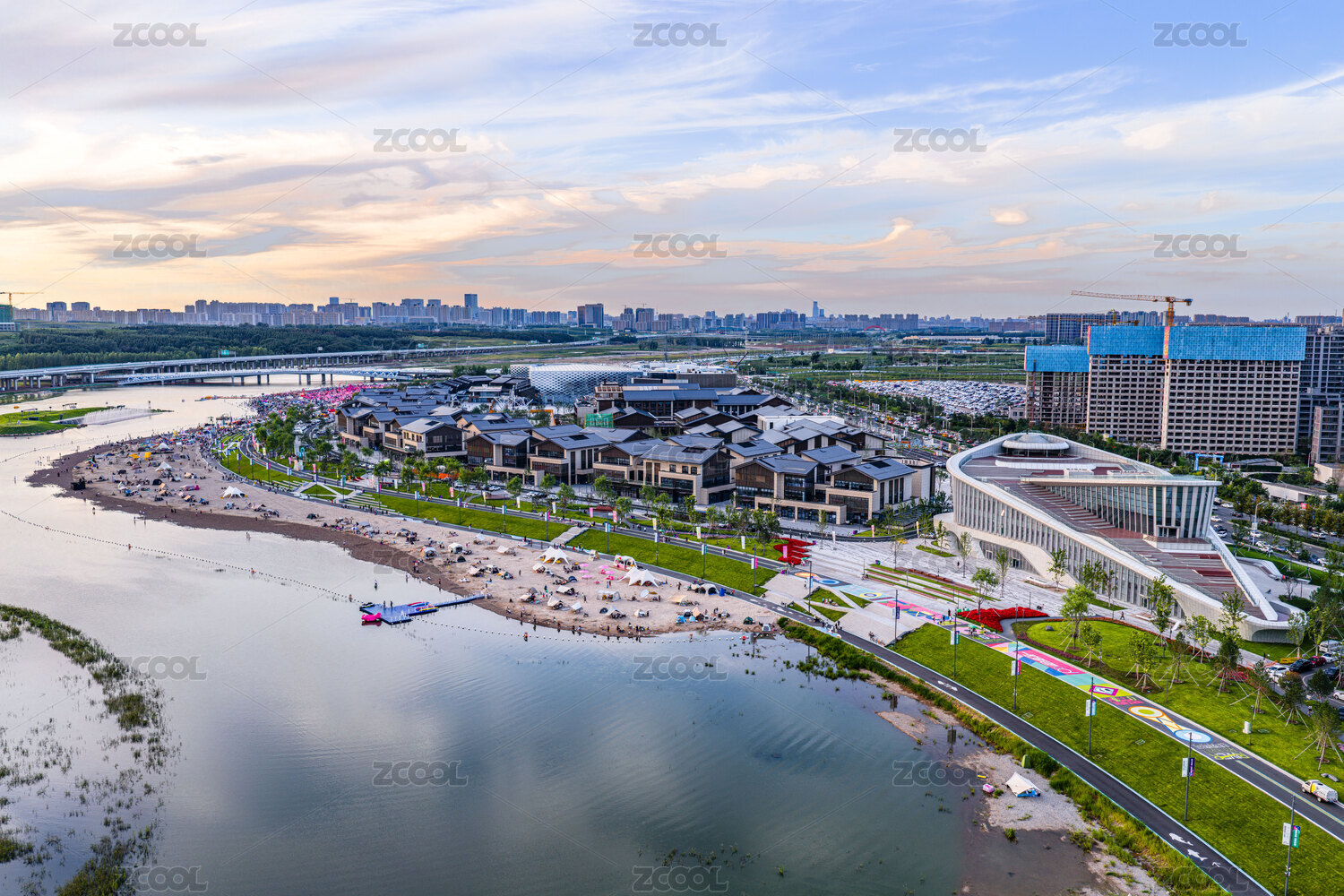 东莞麻涌华阳湖湿地公园周边的建筑群