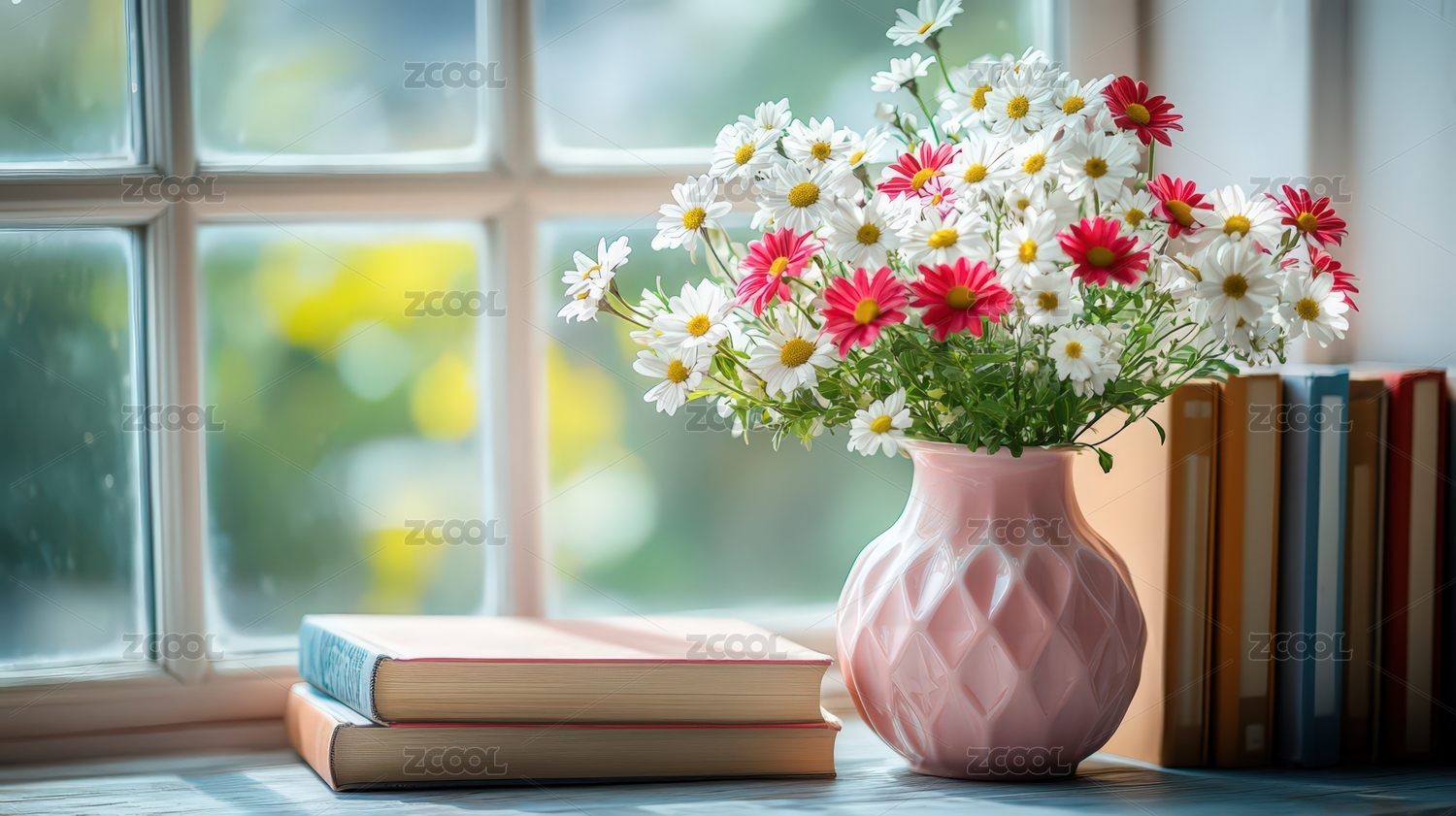 雏菊花与书的自然之美