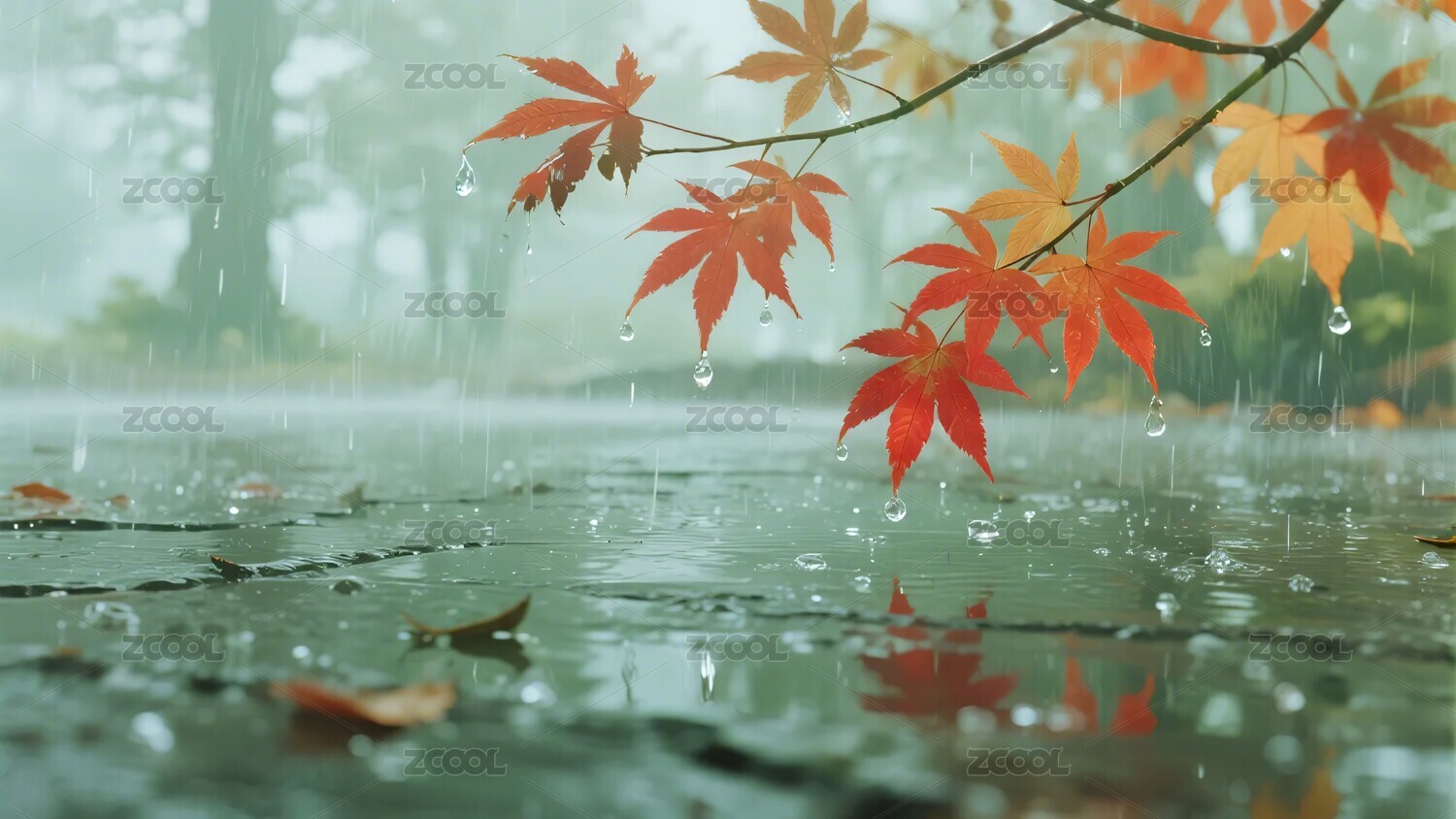 秋天,静谧,自然,景色,秋叶,枫叶,水面,涟漪,落叶,红叶