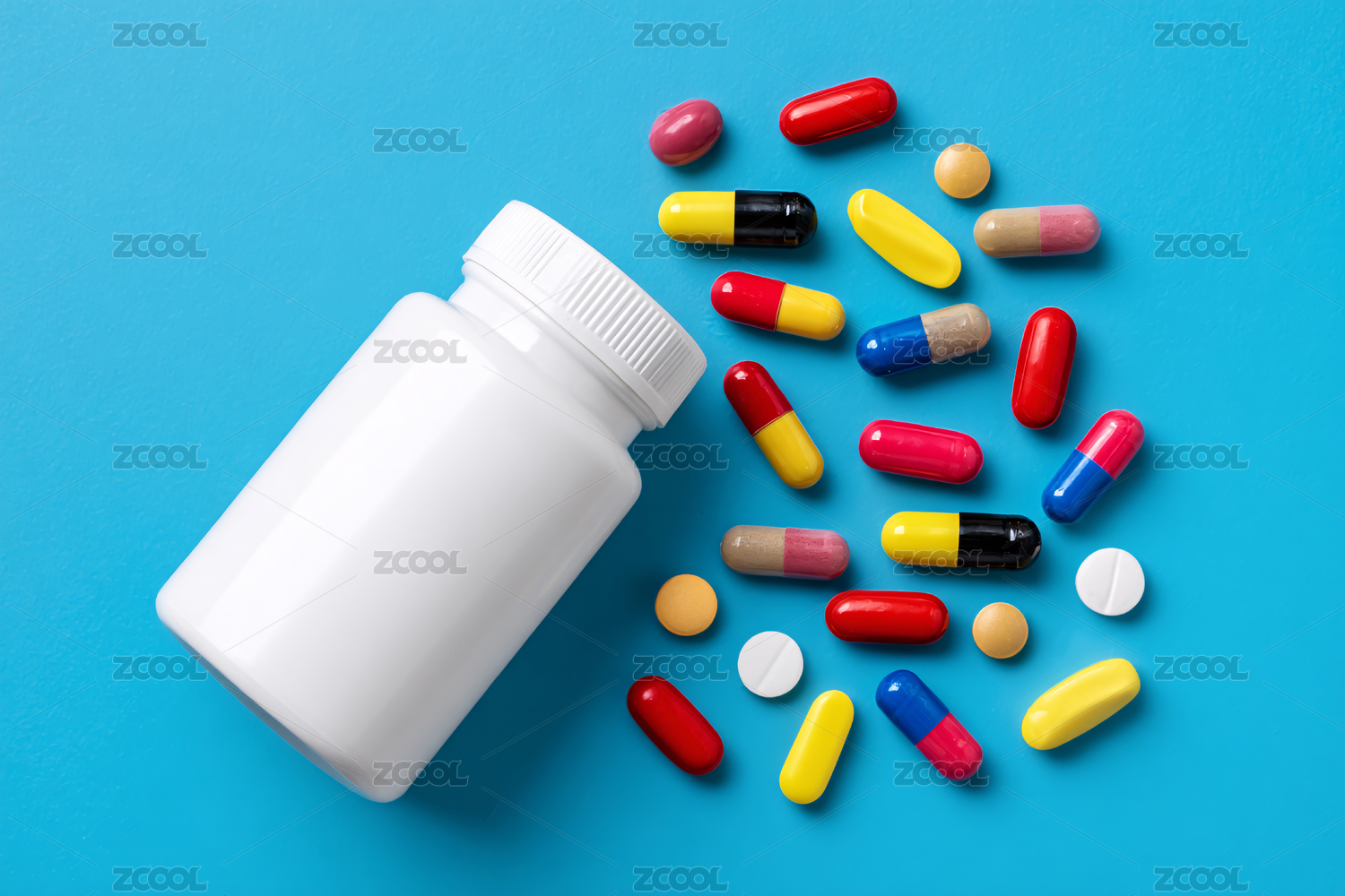 胶囊药片药品药瓶漂浮展示,三维简约背景