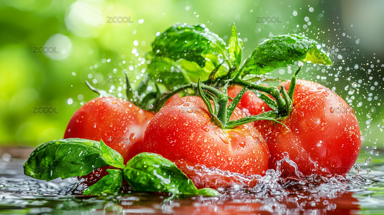 西红柿,水花,绿色,红色,新鲜,蔬菜,水果,植物,清凉,干净