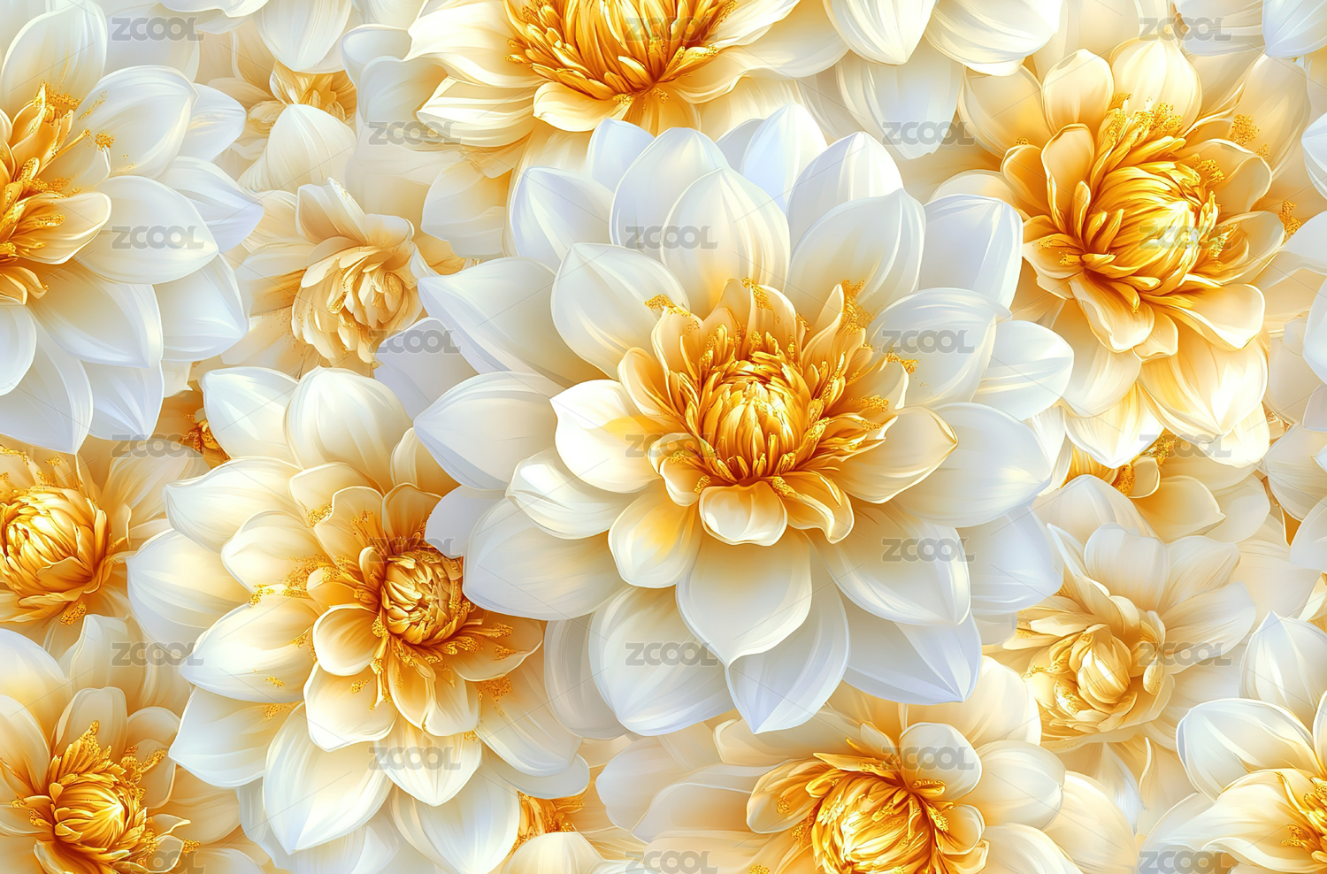 白色背景上的花朵和金色花朵图案