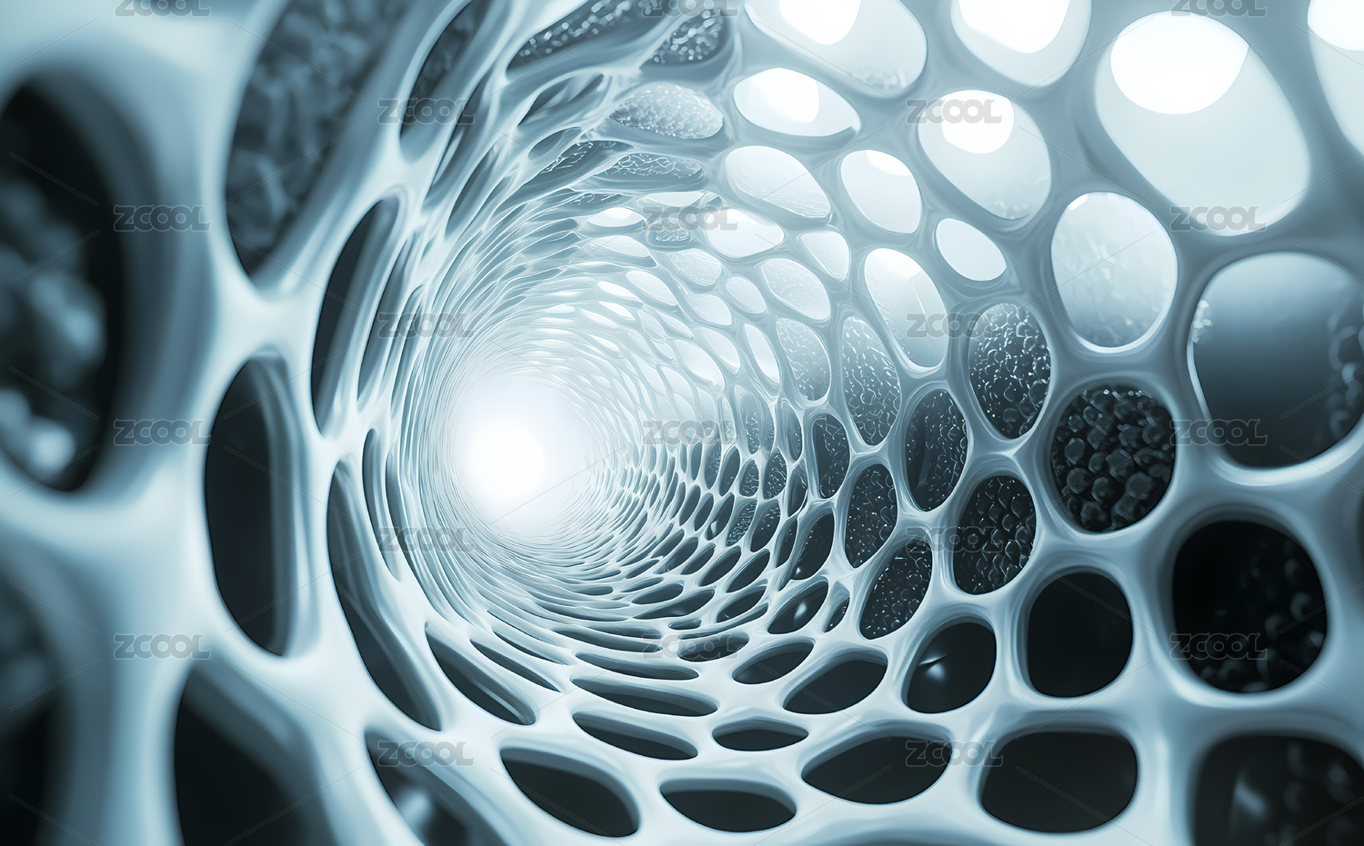 蓝白相间的抽象3D有机隧道