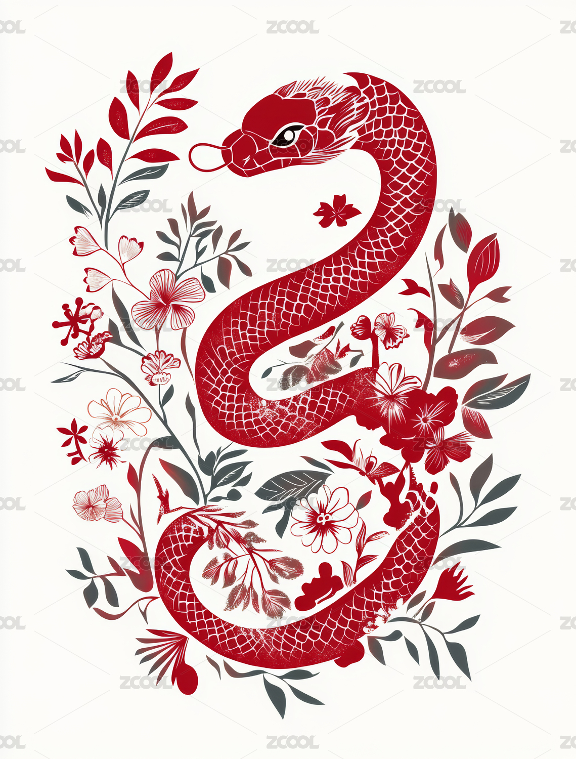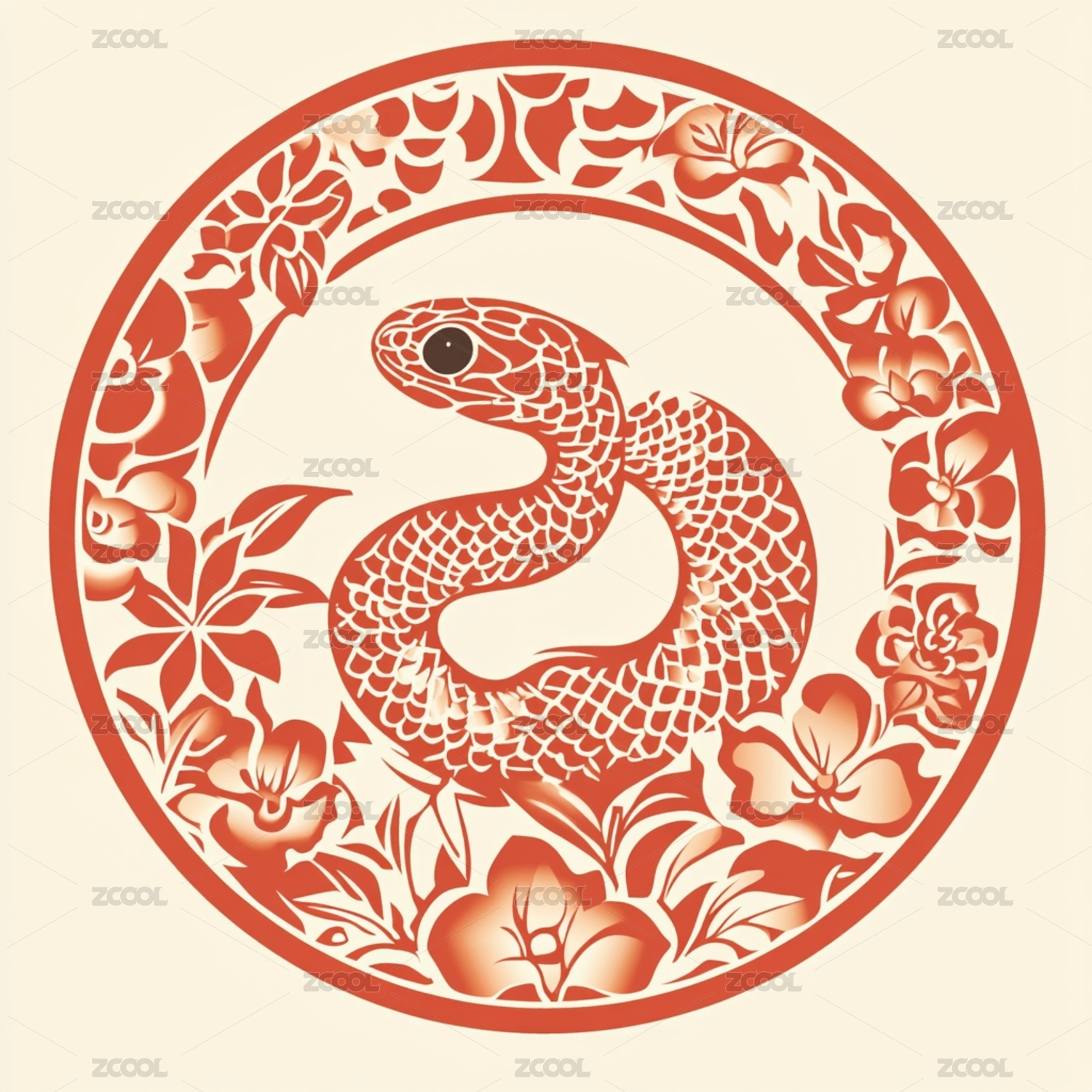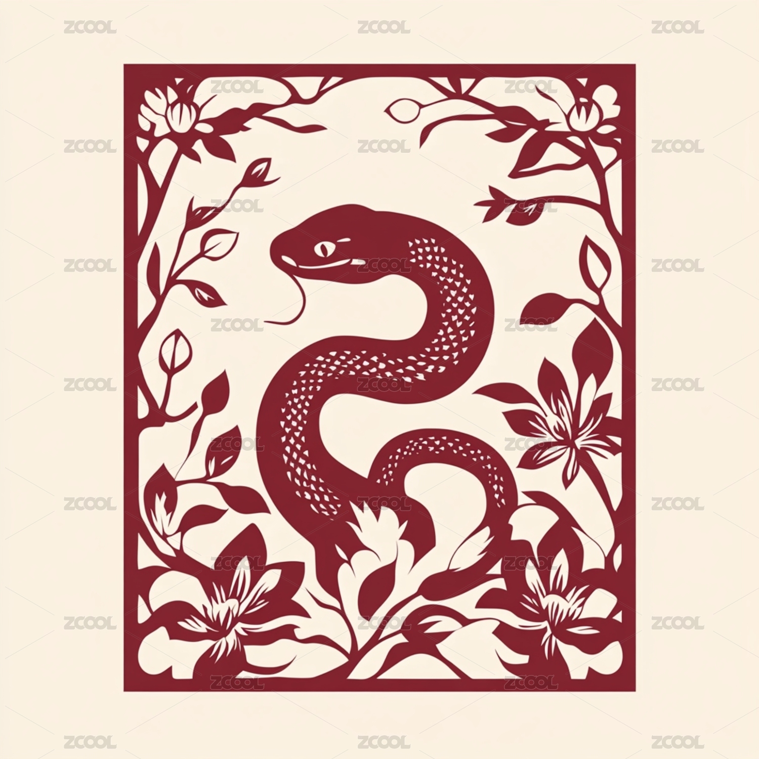 蛇年主题插画艺术剪纸图案logo徽章标志