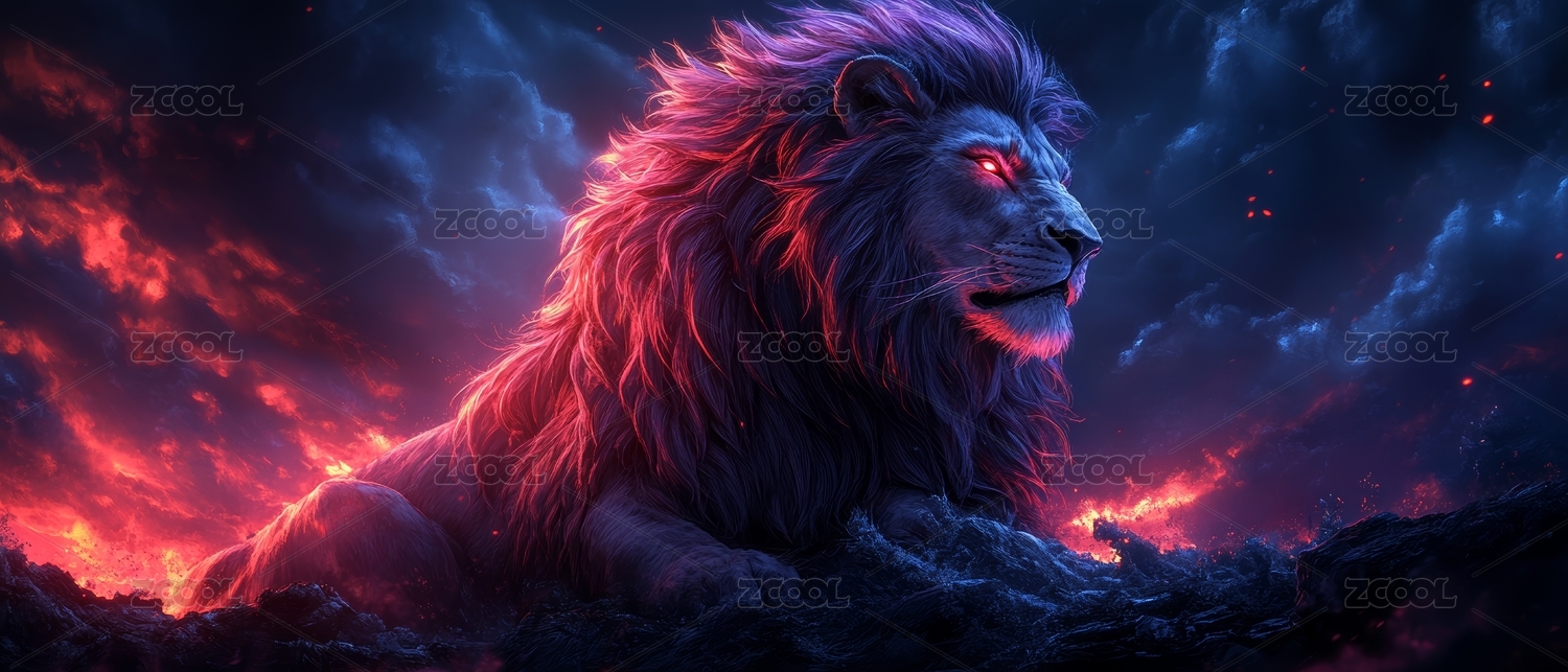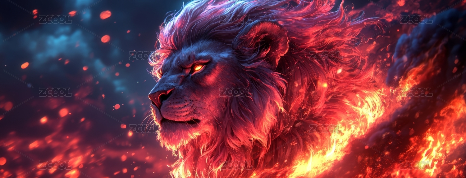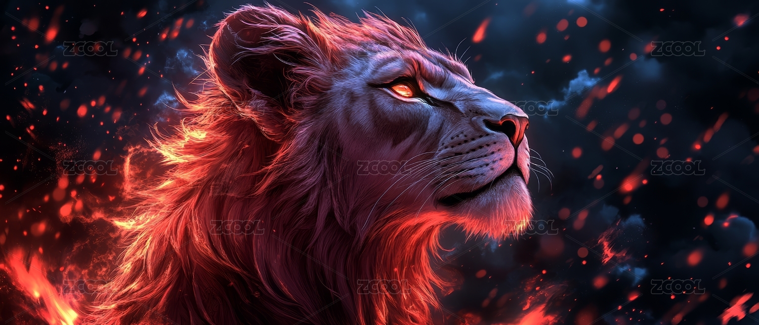 奔跑雄狮火焰夜