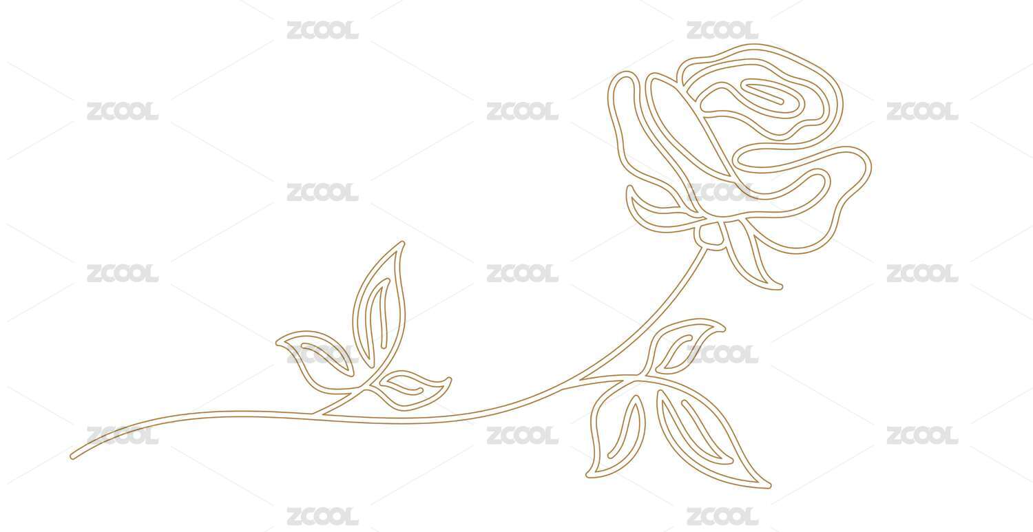金色玫瑰花情人节浪漫轮廓白描线稿图案素材