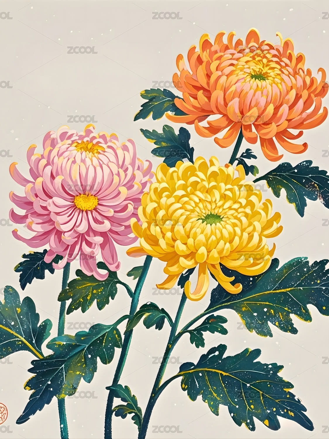 重阳时节美丽菊花插画重阳节中国风赏菊插图