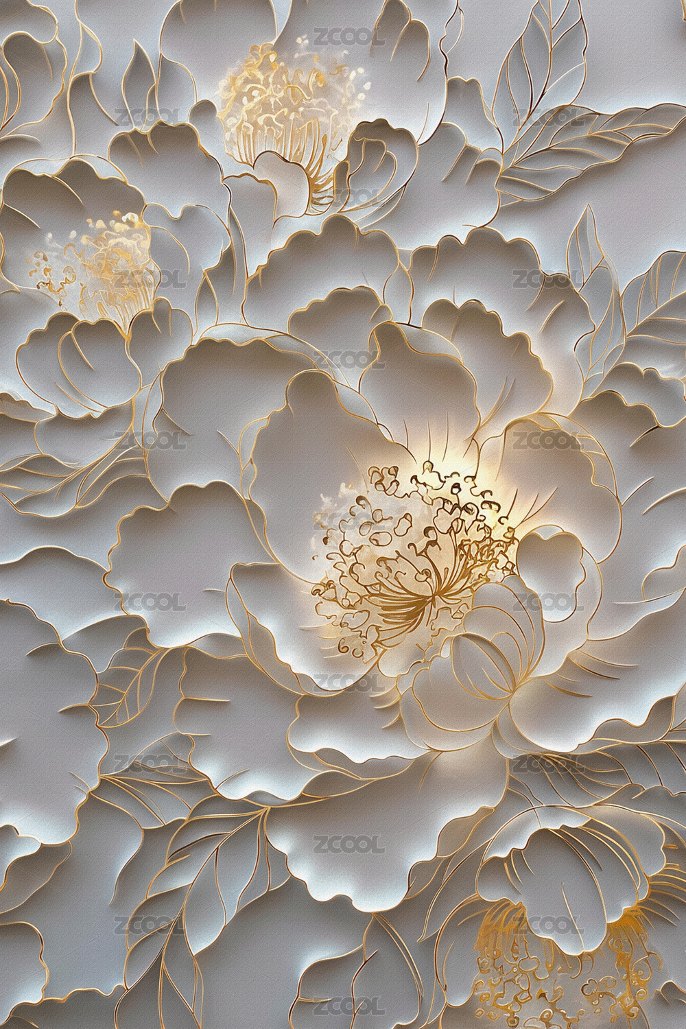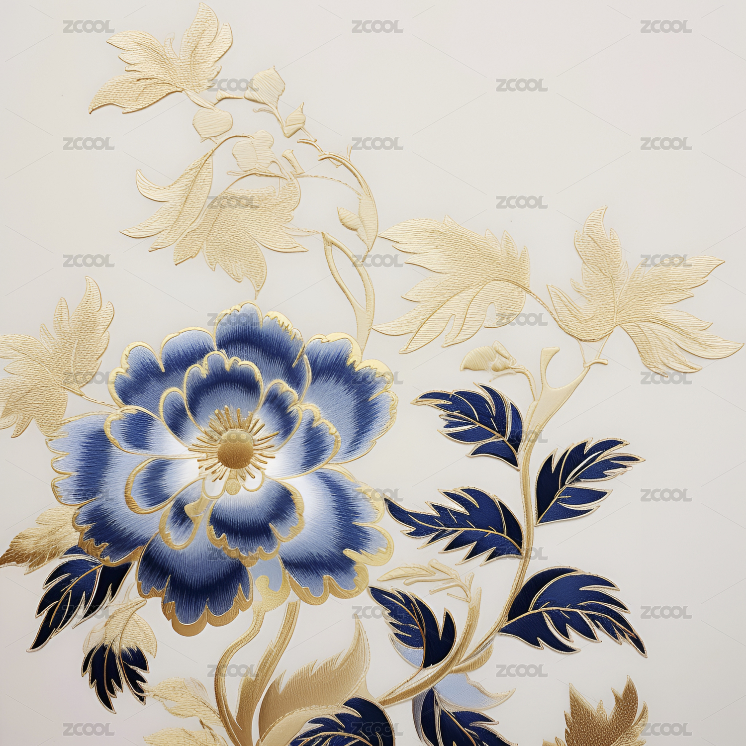 金白相间精美花朵刺绣图案