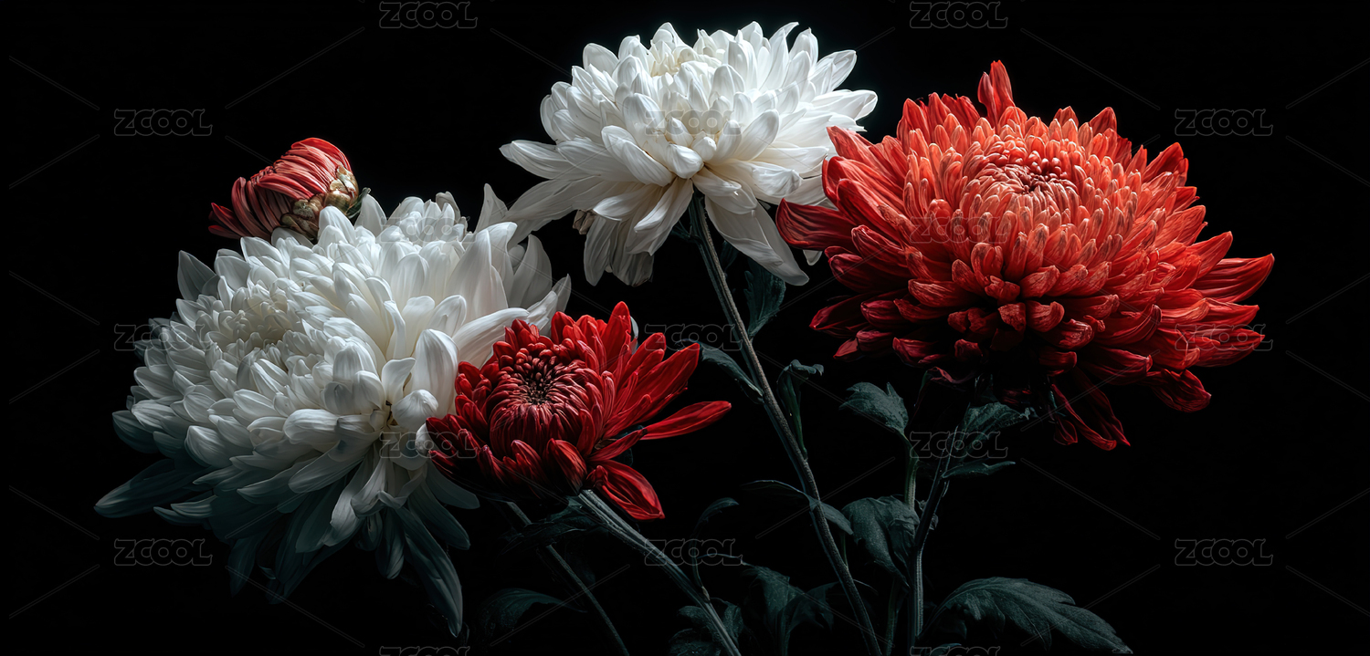红色,黑色,背景,白色,自然,植物,花朵,菊花,茎叶,单株