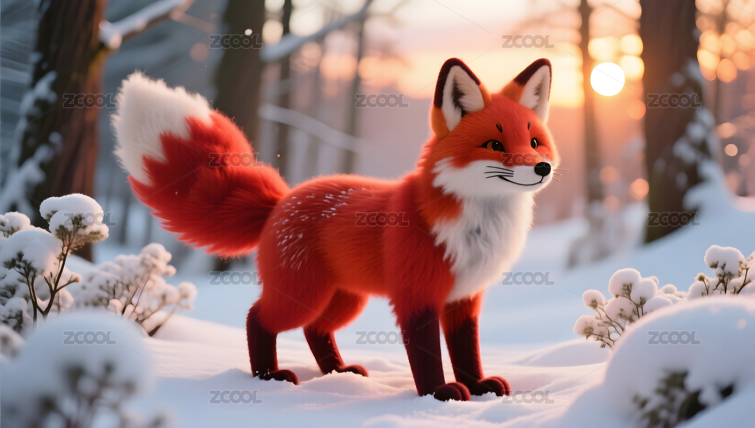 狐狸可爱唯美野生动物3D卡通插画壁纸