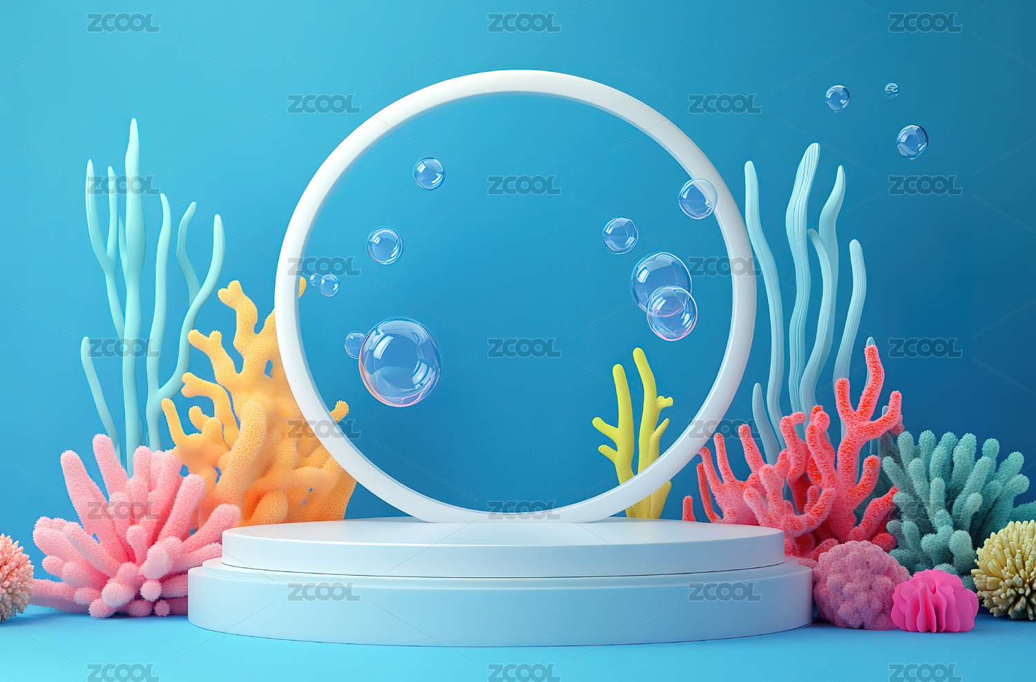 海底世界3D海洋生物珊瑚梦幻唯美自然背景