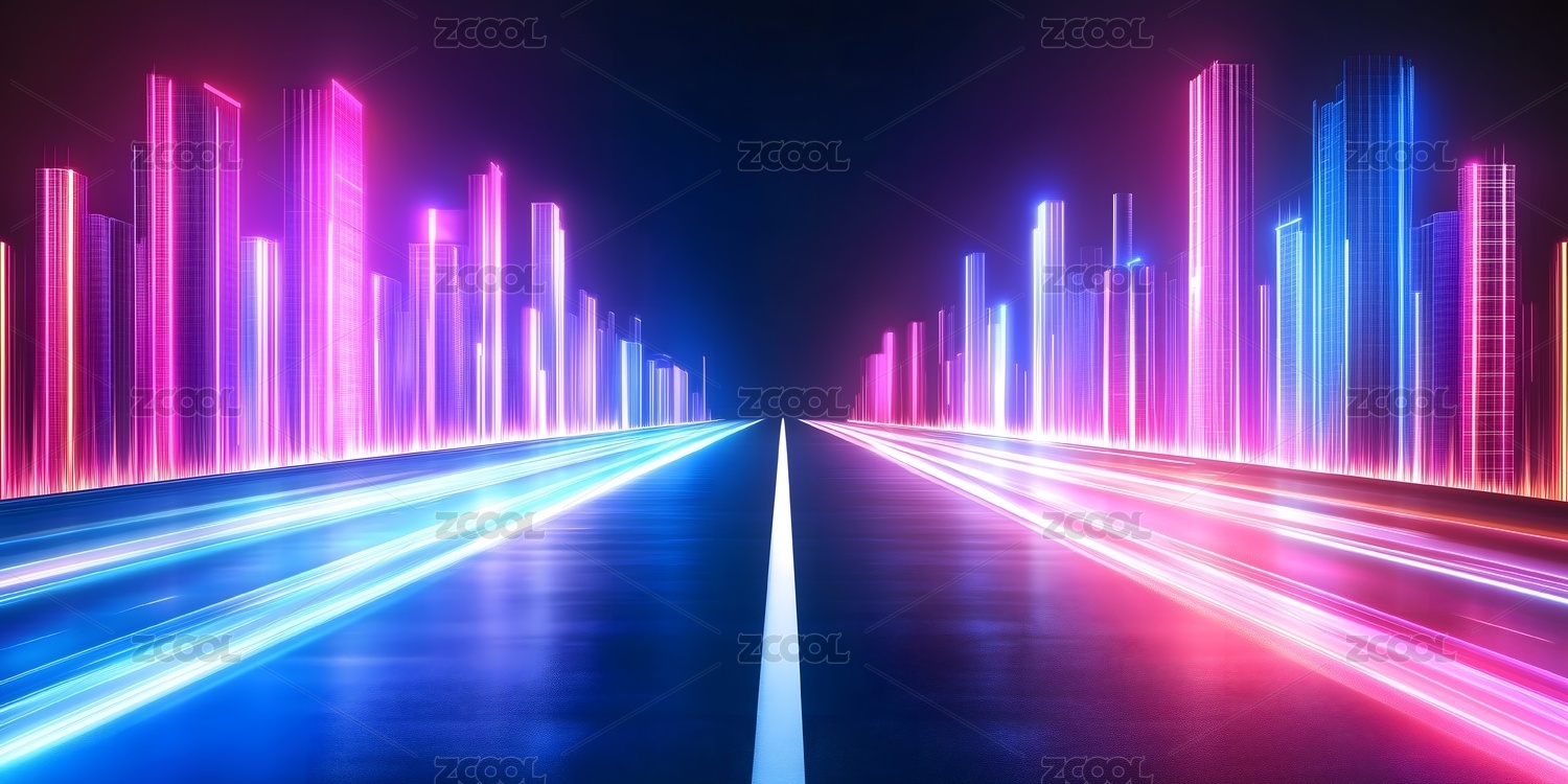 蓝色, 建筑,霓虹灯, 城市, 夜景, 紫色, 高速公路, 未来, 科技, 光线