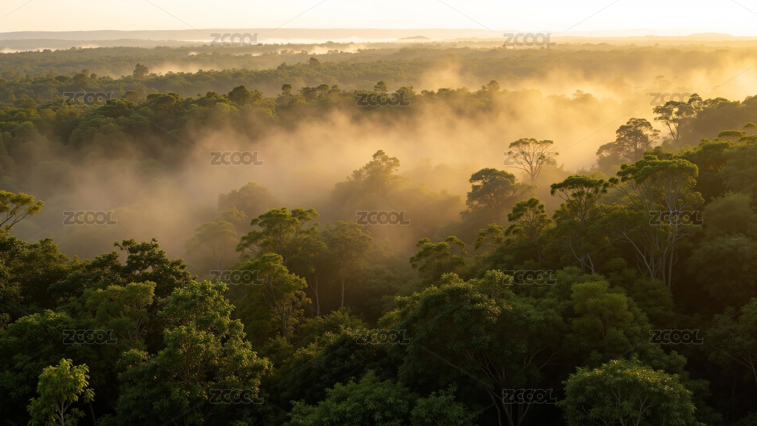 晨雾笼罩的热带雨林
