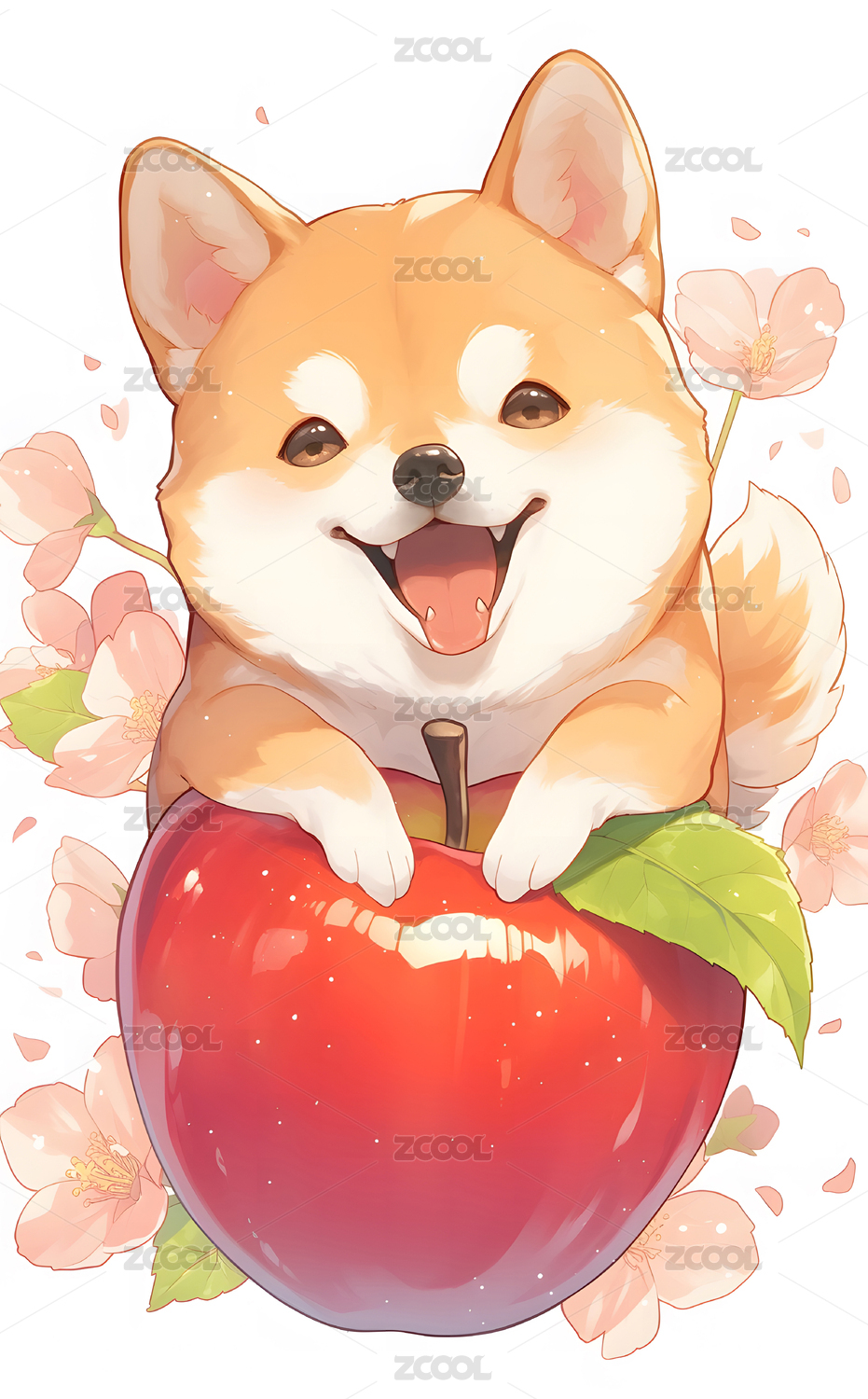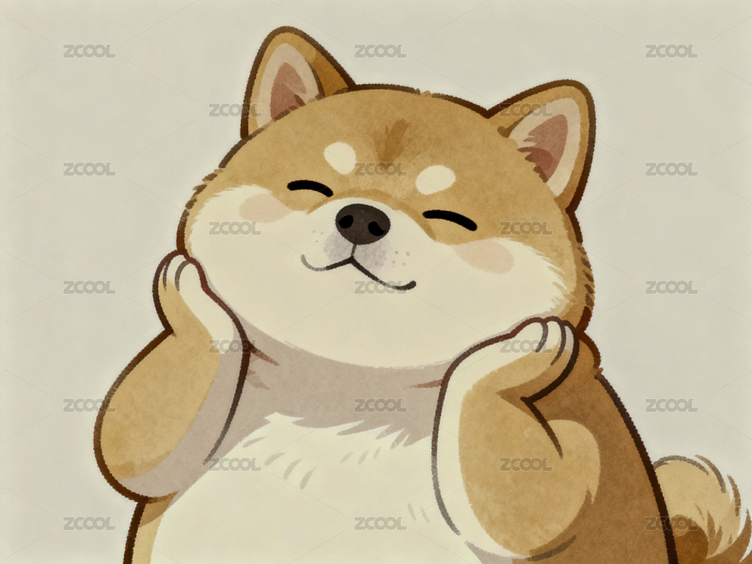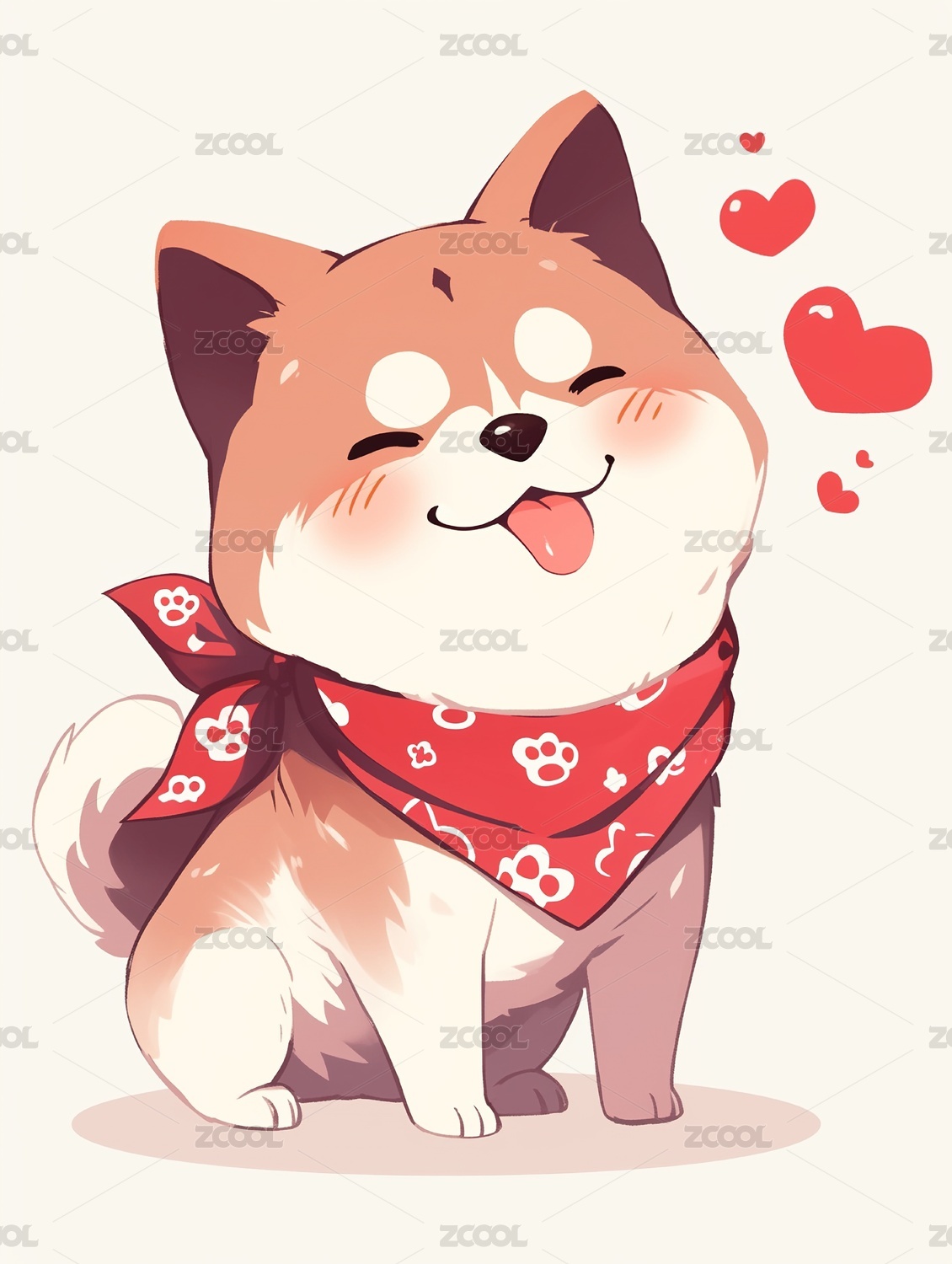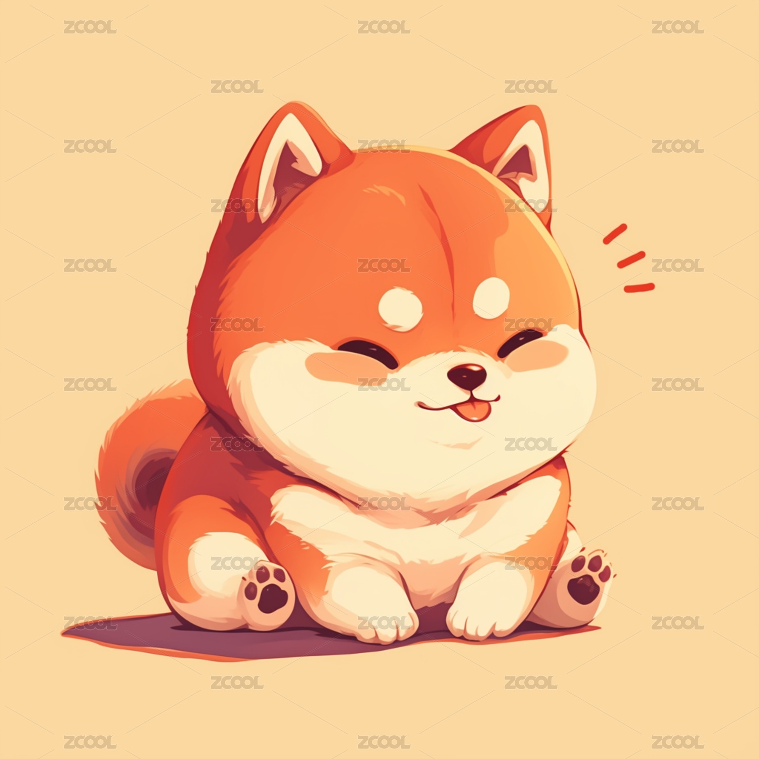 黄色小狗柴犬卡通可爱插画扁平贴纸