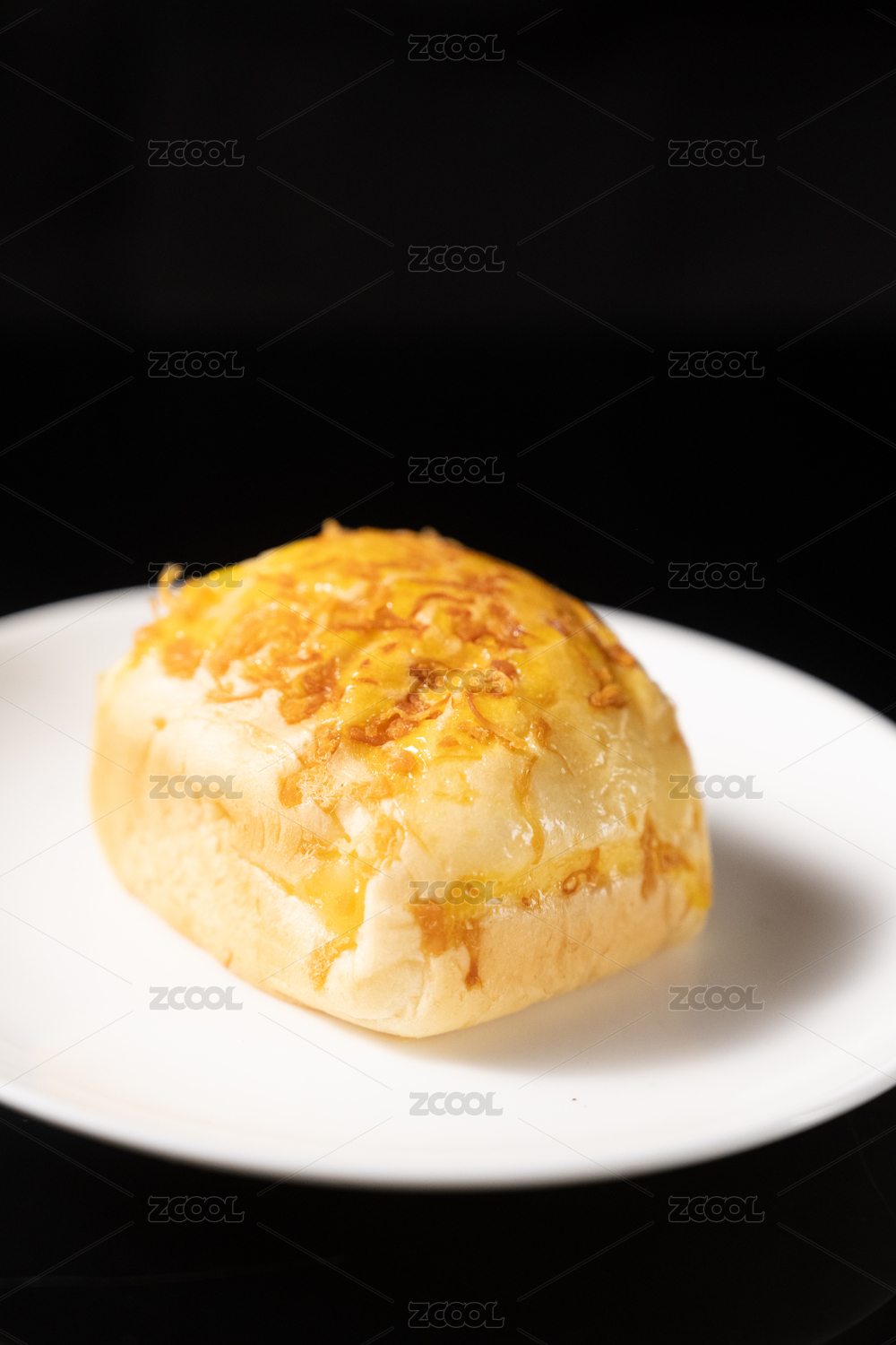 一盘香脆美味的,炭烤馒头片放在灰色桌面上