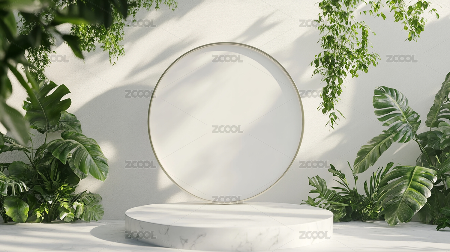 3D渲染静物产品展台绿色植物电商背景素材