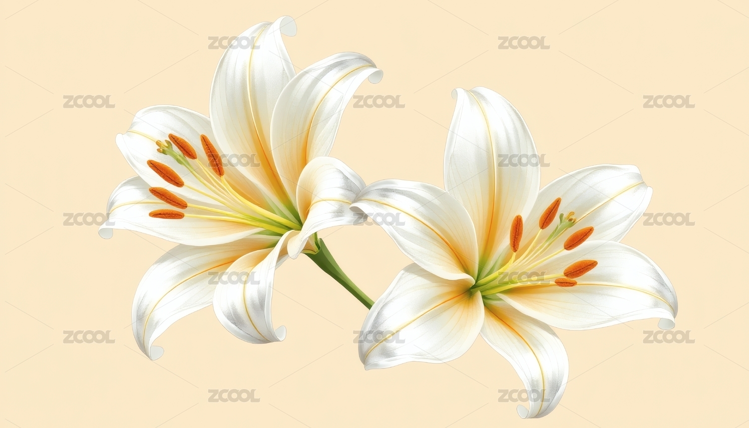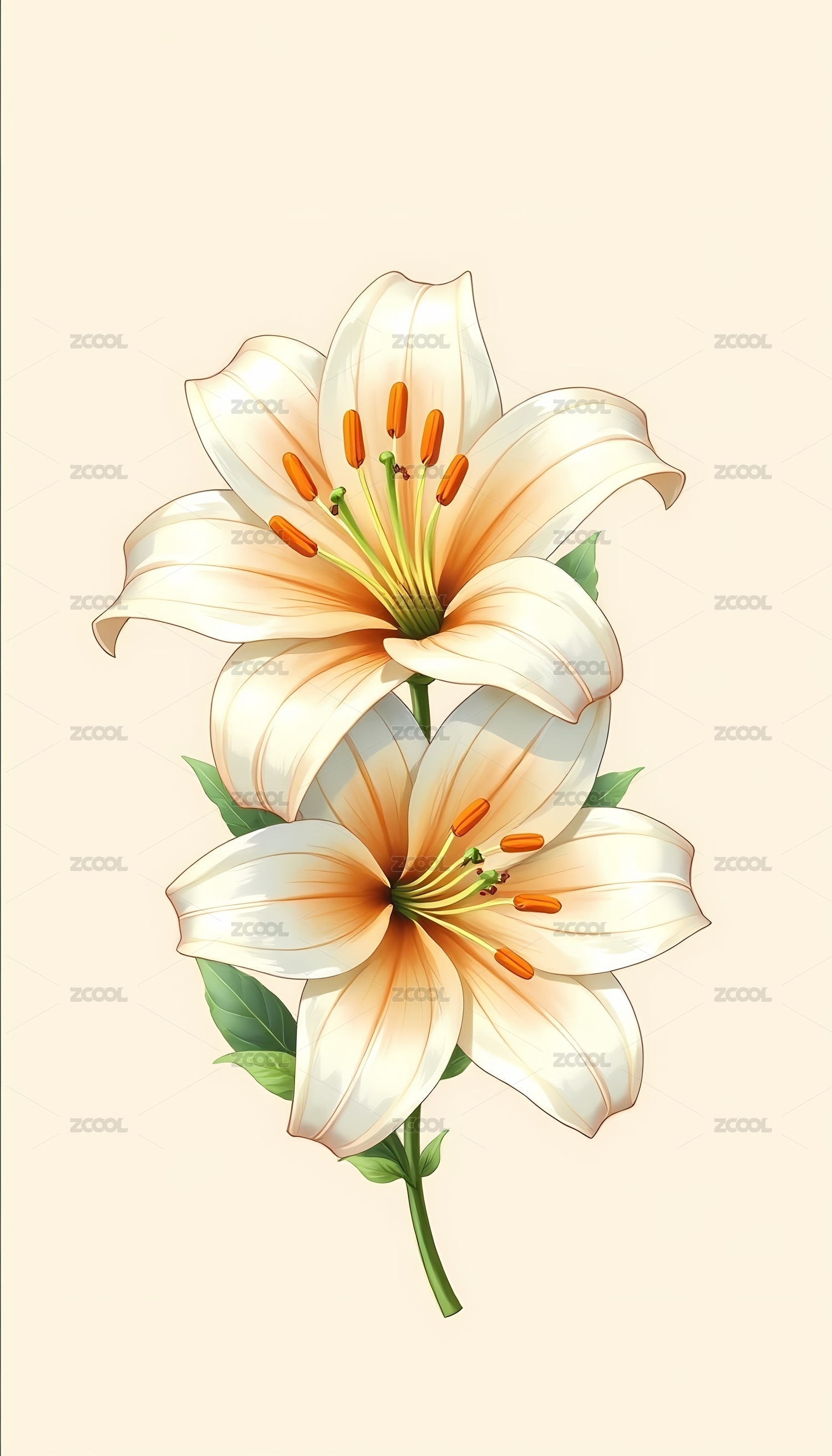 两朵绽放的米白色百合花