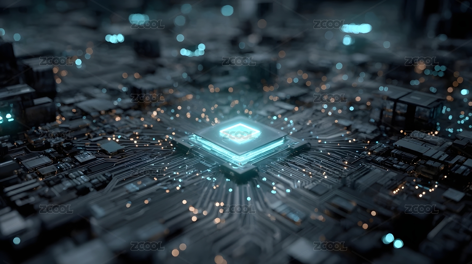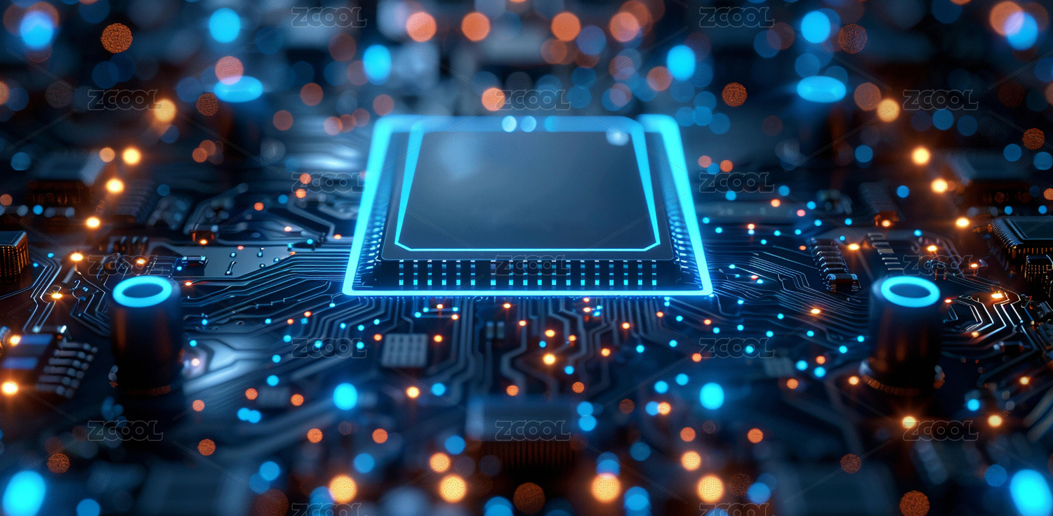 蓝色,科技,未来,橙色,黄色,现代,电路板,发光,核心,灯泡