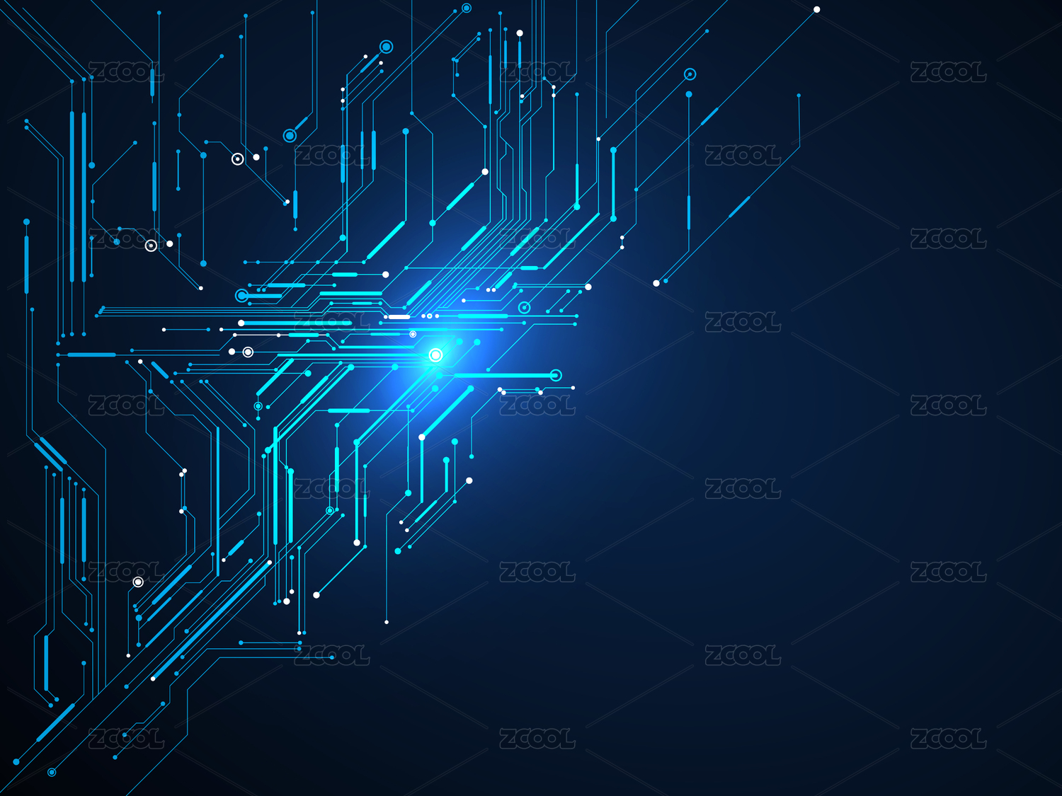 抽象的电路图、蓝色发光科技感图片、矢量电脑芯片。
