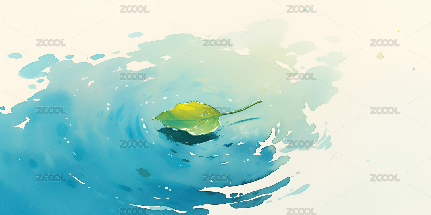 水彩风格蓝色水面插画壁纸