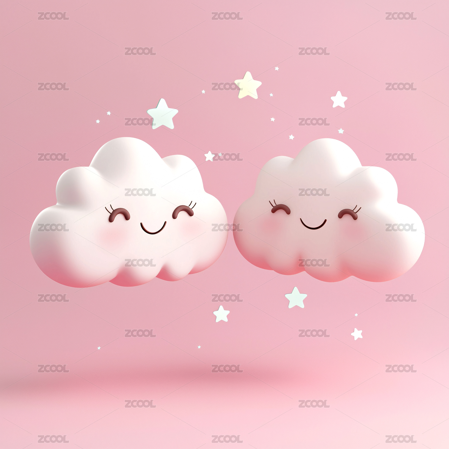 3D,可爱,云朵,星星,背景,简约,海报,壁纸,插画