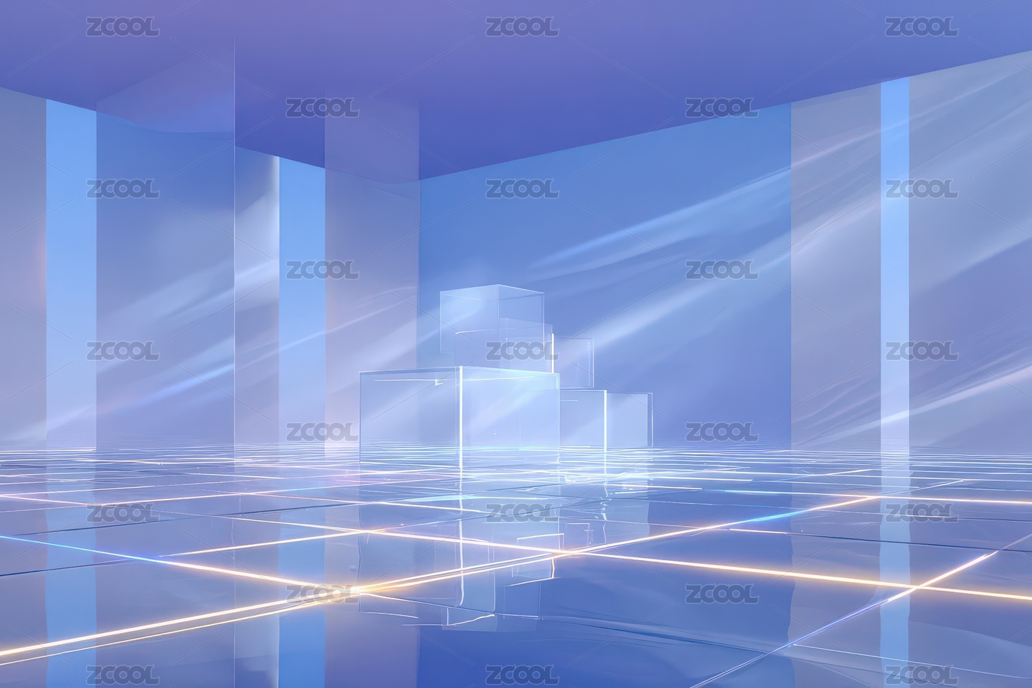 阳光穿过玻璃幕墙照在空场地上,商务背景