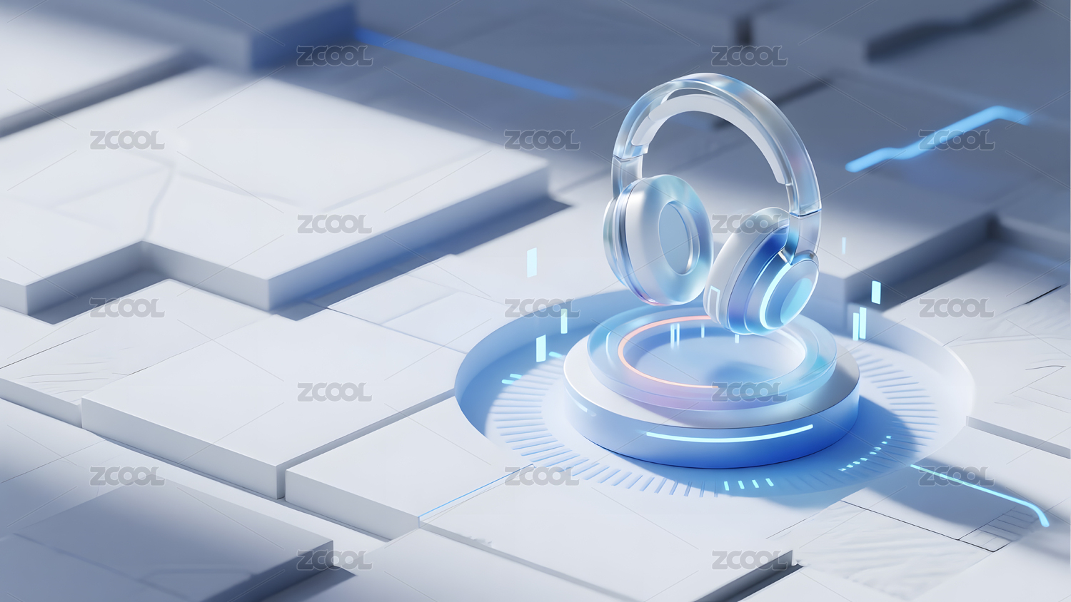 蓝色科技感的耳机图