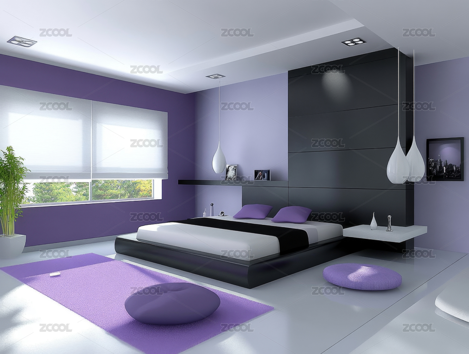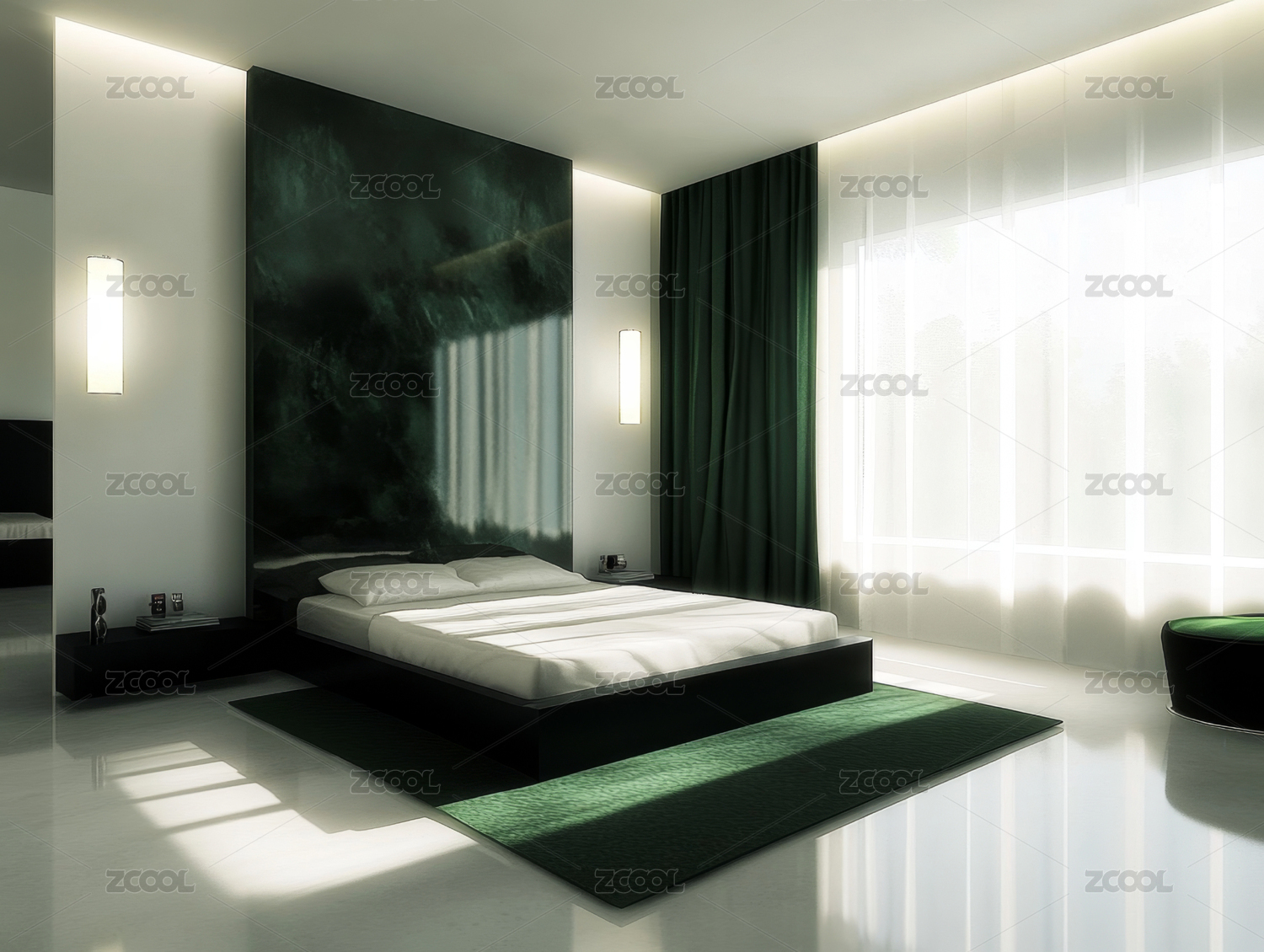 卧室,现代,简约,床,镜子,窗帘,灯光,室内,设计,装饰