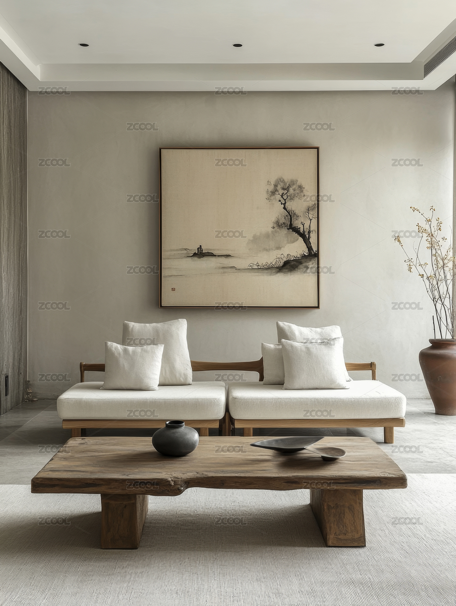 日式,简约,客厅,木质,家具,吊灯,植物,装饰画,茶几,榻榻米
